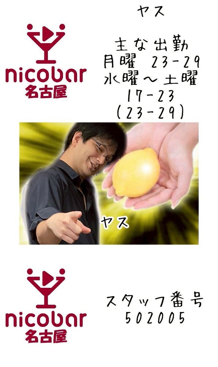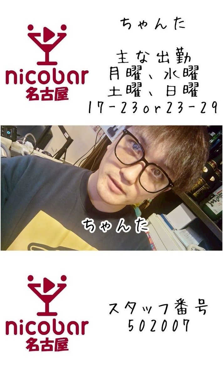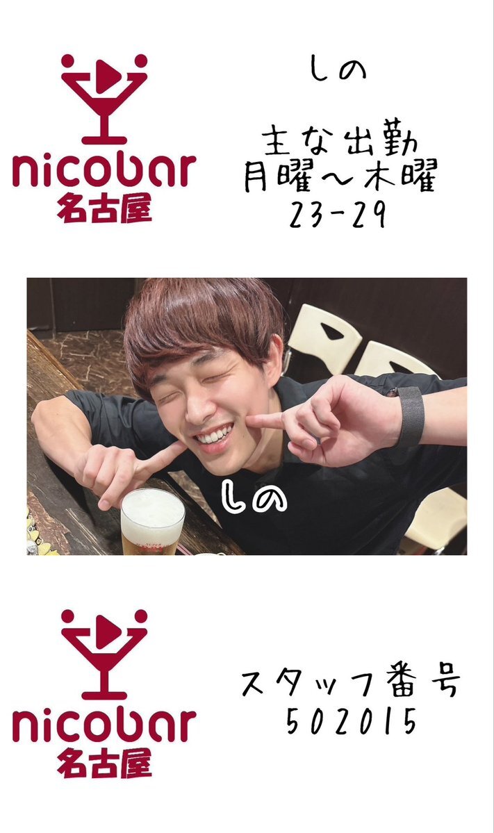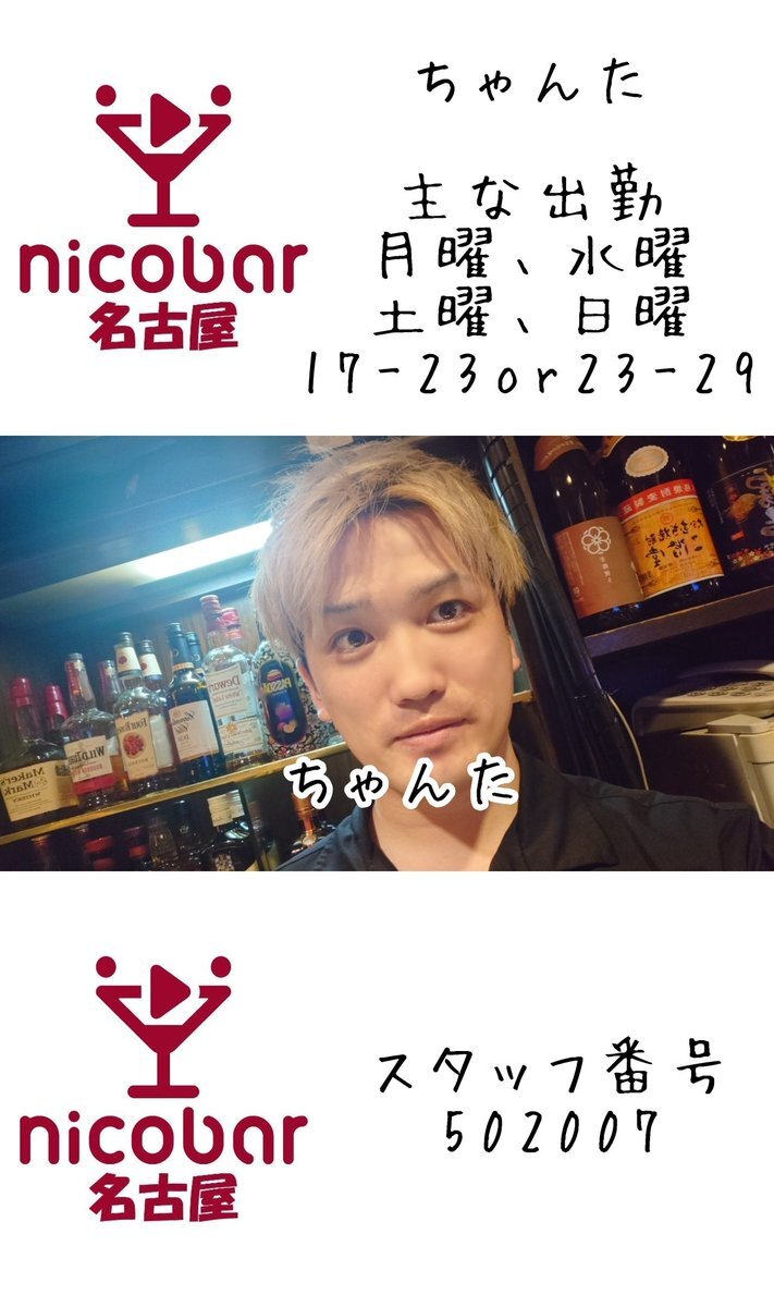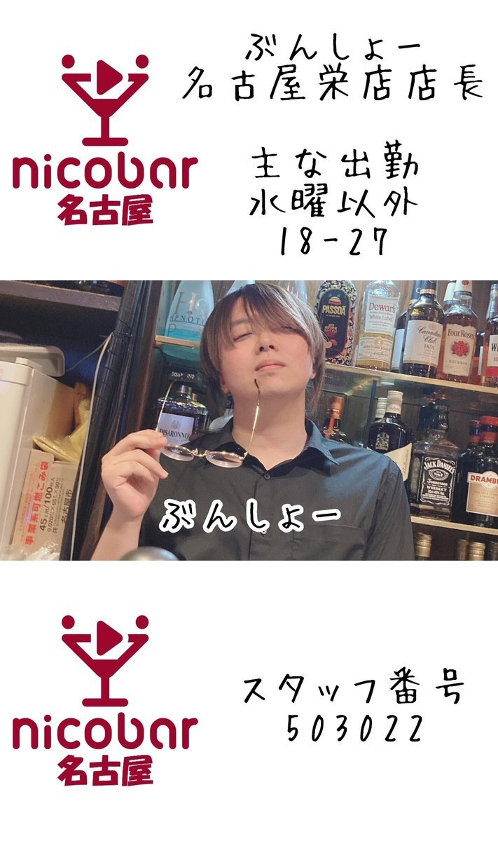 ☀10.15(水)前半スタッフ☀ 18時〜翌朝5時まで営業中! 18-23 ヤス @yasu_nicobar 19-23 うすい @NBN_us 今月のカレンダークーポン📣 700円以内の料理一品無料🍴 #名古屋 #栄 #錦 #錦三 #飲み放題 #一人飲み #喫煙可 #栄コンカフェ #錦コンカフェ #Mixコンカフェ #ダイニングバー