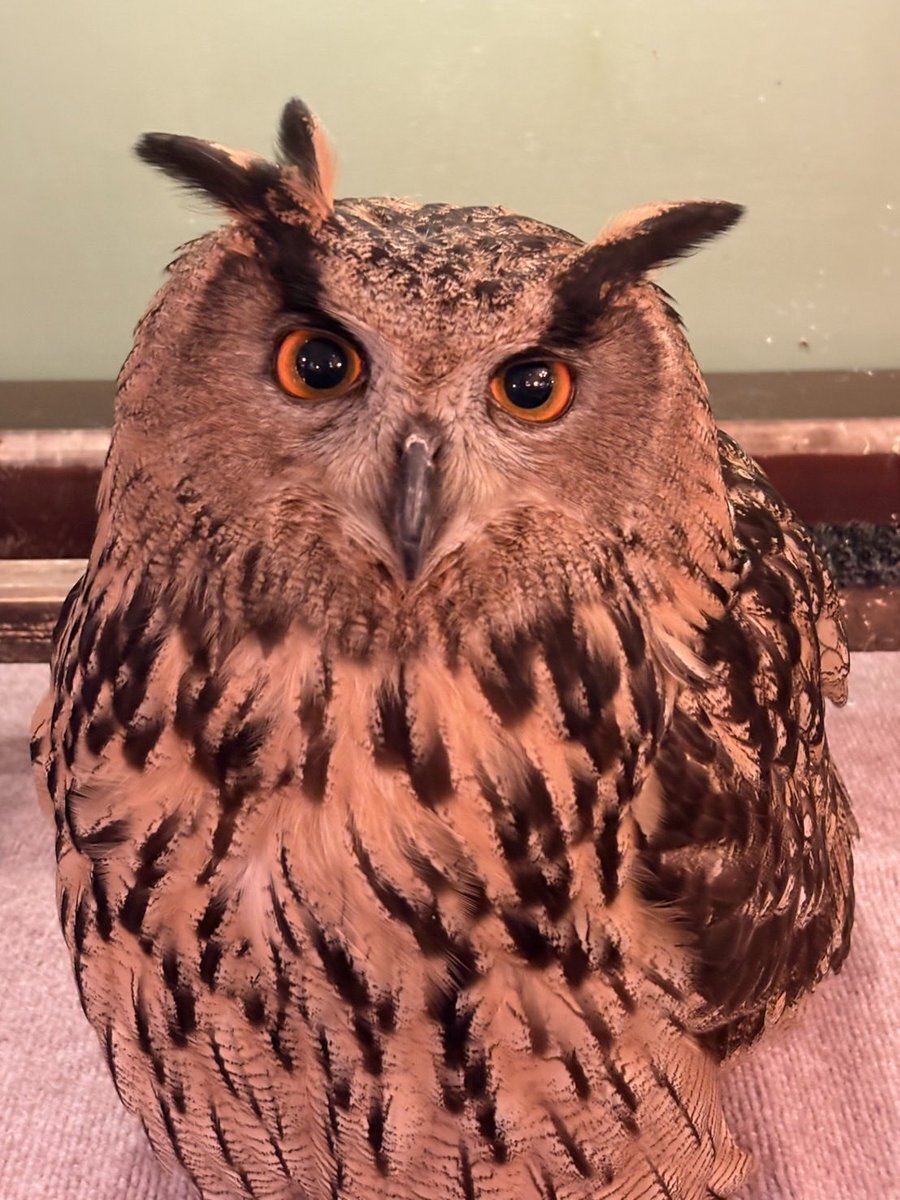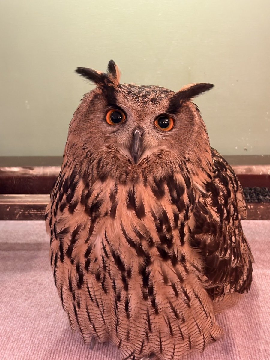ユーラシアワシミミズクのまさる🦉 オレンジの瞳がかわいい😍🧡 😊 #かわいい生きものミュージアム ってどんなとこ❓ 💁♀️ cuteanimalmuseum.com #鎌倉 #小町通り #フクロウ #フクロウカフェ #owl #ユーラシアワシミミズク pic.x.com/wPQ4CLUGni