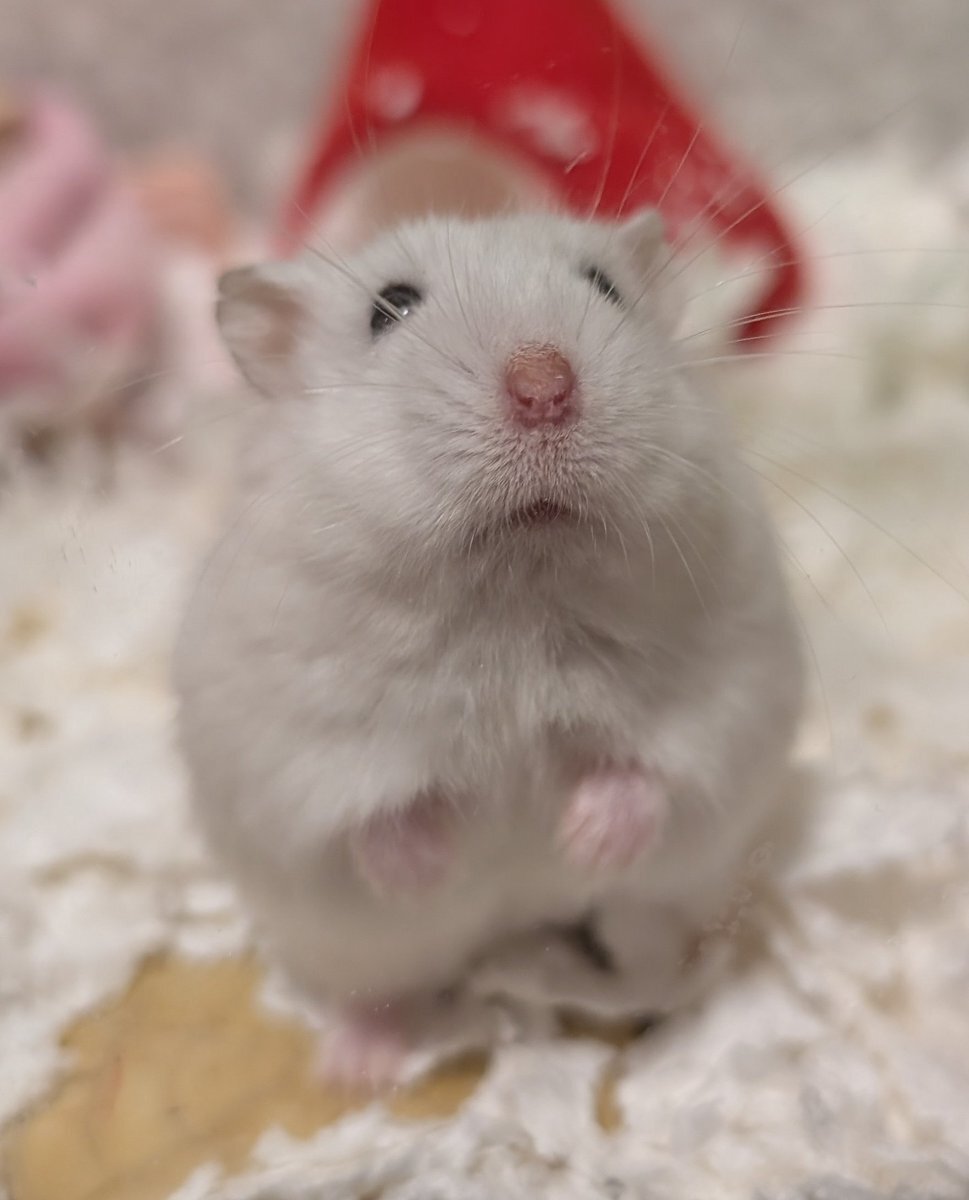 サンタ帽ハウス見に行った時可愛い♥️🍓柄もふもふタオルがあったので色違いで買ってハウスの下に敷きました ヒーターの熱も手伝って2🐹共あったかそう☺️ 一緒にお部屋飾りもXmas🎄 #長毛ハムスター #スノーホワイトジャンガリアン #ハムスターのいる生活 pic.x.com/IV94YLAUkT