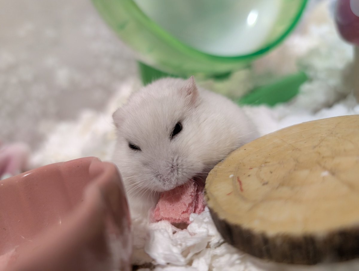 👩 ただいまぁ❤️ おやつだよぉ☺️ 🐹🐹 ウエハスさんだっᐢ ̳>𖥦< ̳ᐢ もか君はたまごにお持ち帰り でも中は貯蔵ご飯いっぱい過ぎて入れないのよねwww 頑張って貯めたけど、お掃除の日はすぐ( *´艸`) #スノーホワイトジャンガリアン #長毛ハムスター #ハムスターのいる生活 pic.x.com/Y48FNM2gYK