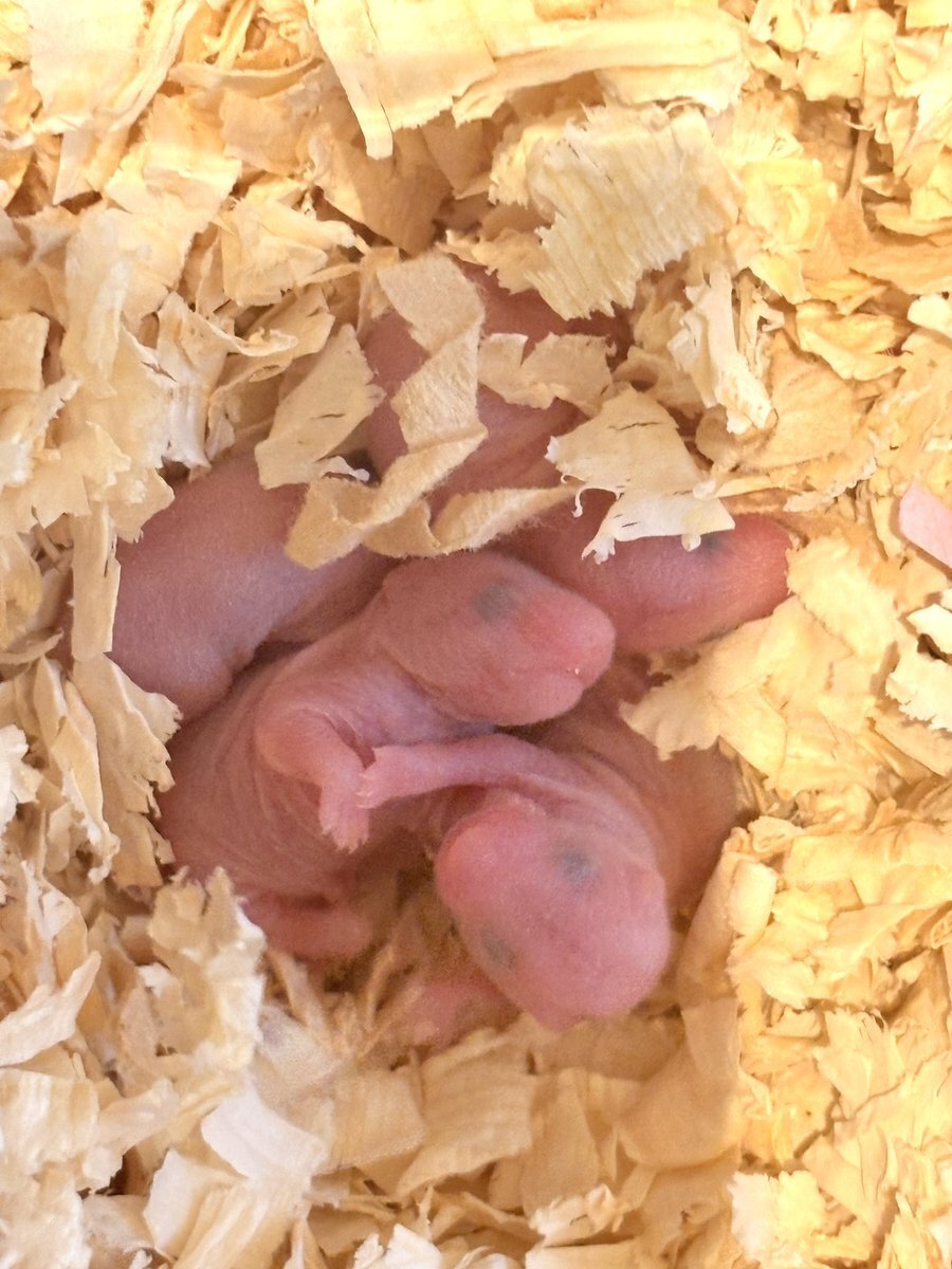 昨日もお迎えありがとうございました🙇🏻♀️ 寒さも本格的になって来ましたので、子豚ちゃん飼育されてる方々は飼育環境の見直しや適時パネヒや綿床などでハゲた子豚が寒くないようにしてあげてください🙏🏿✨ #ふるくる #スキニーハムスター #長毛ハムスター #シリアンハムスター pic.x.com/k1TjNDf3nb