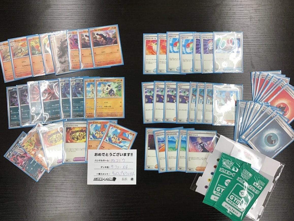 本日17:00開始のポケモンカードジムバトルは8名で開催しました❢ 優勝者は「ミケねこ」さん デッキ名:ナンジャモ 「チェインボルト320」とコメントいただきました。 ご参加ありがとうございました✨✨✨ #ポケカ #ハイパートレカ #長浜 pic.x.com/w1QfbHaik8