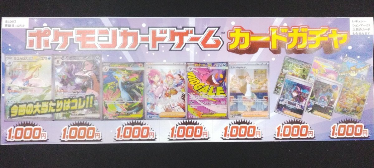 ポケモンカード¥1️⃣0️⃣0️⃣0️⃣ガチャ更新しました❢ 今回の大当たりは ・ミロカロスex(131/106 SAR) ・マリィのオーロンゲex(243/193 SAR) その他当たり多数🔥🔥🔥 ぜひご来店ください✨✨✨ #ポケカ #ハイパートレカ #長浜 pic.x.com/ffHwMN2EG1