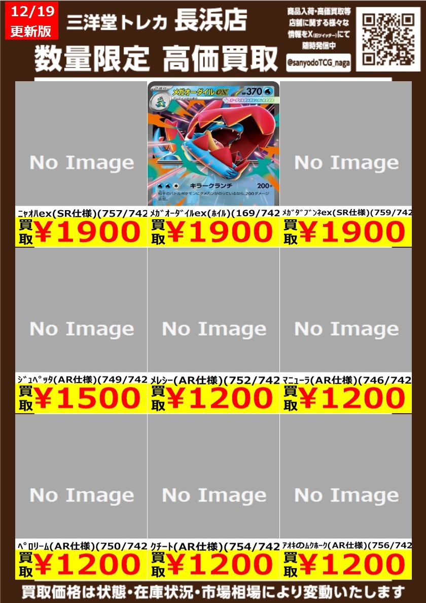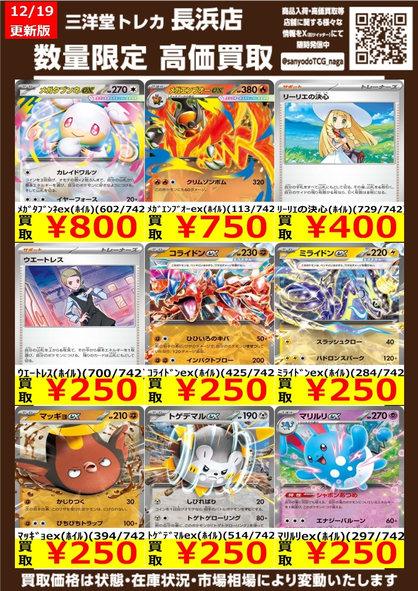 #ポケカ スターターデッキ② 💡高価買取情報更新💡 ドシドシお持ち込みください‼ ✅メガオーダイルex(SAR仕様)(763/742) ¥20,000 ✅メガメガニウムex(SAR仕様)(761/742) ¥20,000 ✅ボスの指令(カラスバ)(SR仕様)(760/742) ¥17,000 #三洋堂トレカ館 #長浜 pic.x.com/QL0IAfdak9