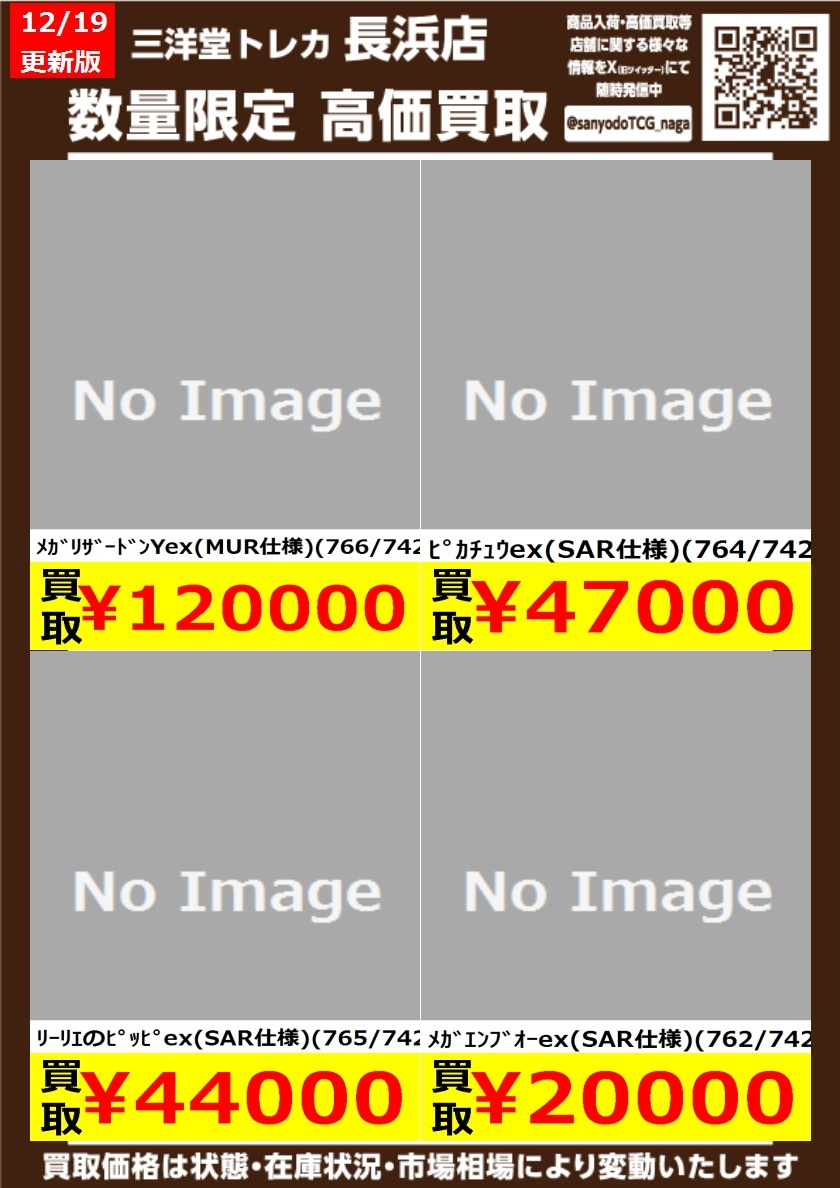 #ポケカ スターターデッキ① 💡高価買取情報更新💡 ドシドシお持ち込みください‼ ✅メガリザードンYex(MUR仕様)(766/742) ¥120,000 ✅ピカチュウex(SAR仕様)(764/742) ¥47,000 ✅リーリエのピッピex(SAR仕様)(765/742) ¥44,000 #三洋堂トレカ館 #長浜 pic.x.com/2bz7deYnJY
