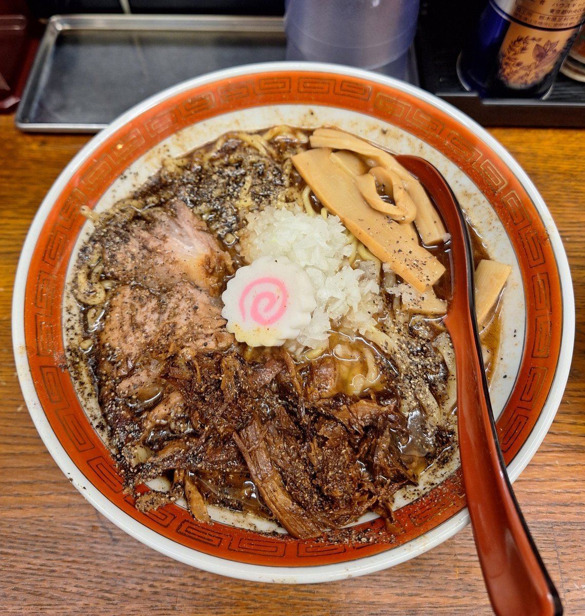 門前仲町にある…… 【 東神田ら〜めん3 】に来た♪ 頼んだのは、モンナカブラックと小さいご飯 チャーシューは、甘辛な仕上げで、ご飯に合いそうな味♪ 胡椒の味が強め ↓ スープひとくちだけで、麺も完食ならず! #東神田ら〜めん3 #ラーメン #モンナカブラック #胡椒 #唇痺れる #門前仲町 pic.x.com/FwNPflnPah