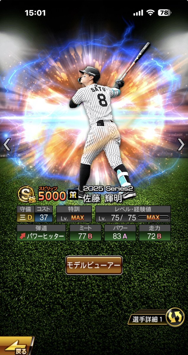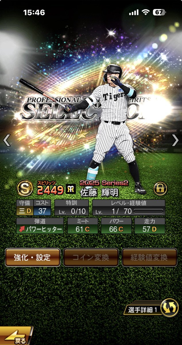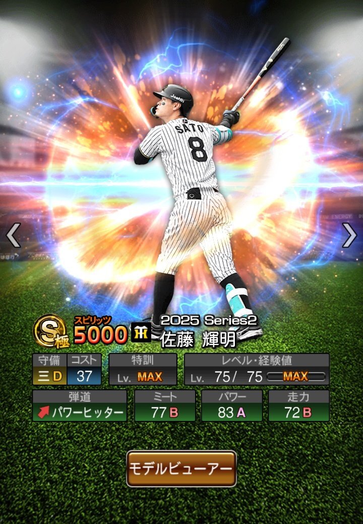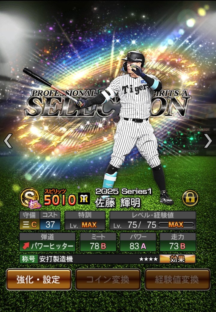 サトテル通常でこの強化しちゃったら今後どこ強化するんや ベストナインか来年以降パワーSorアーチストは確実なんちゃう? #プロスピA #阪神タイガース #阪神純正 pic.x.com/PVlJeqBUX9