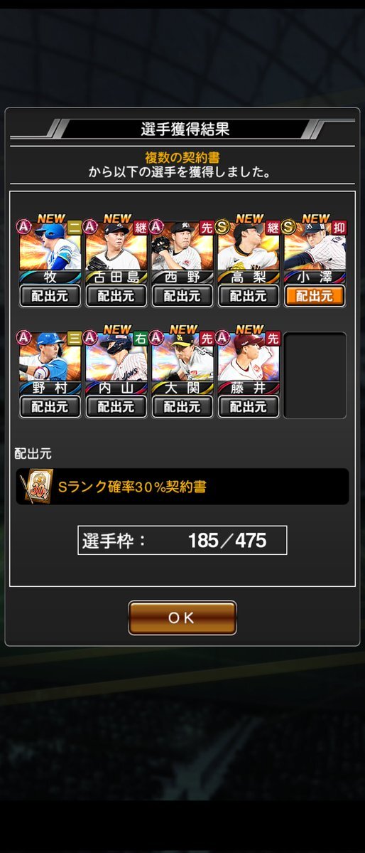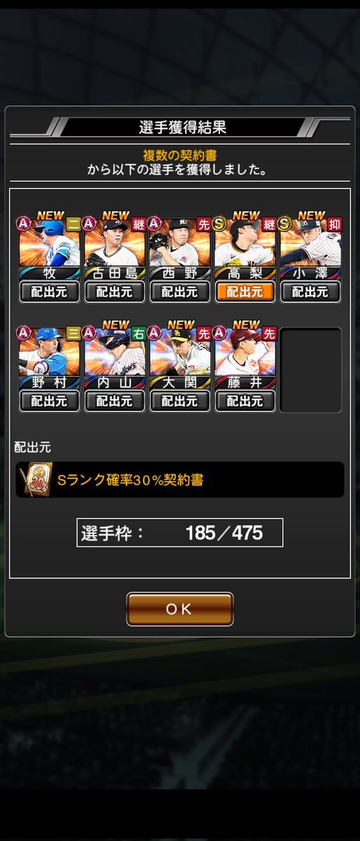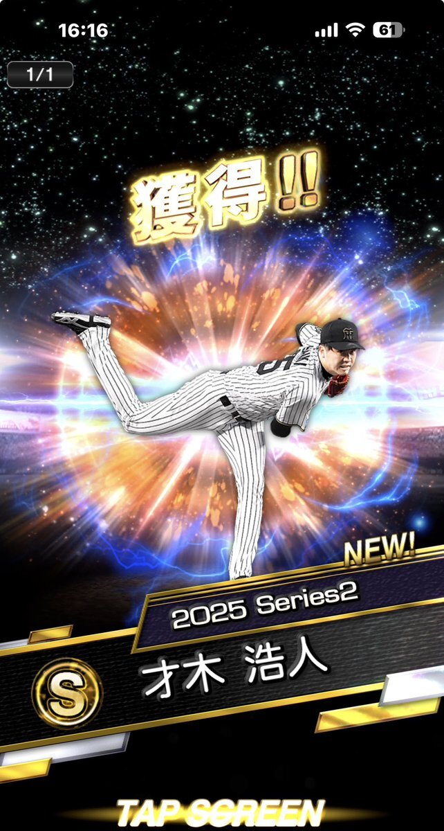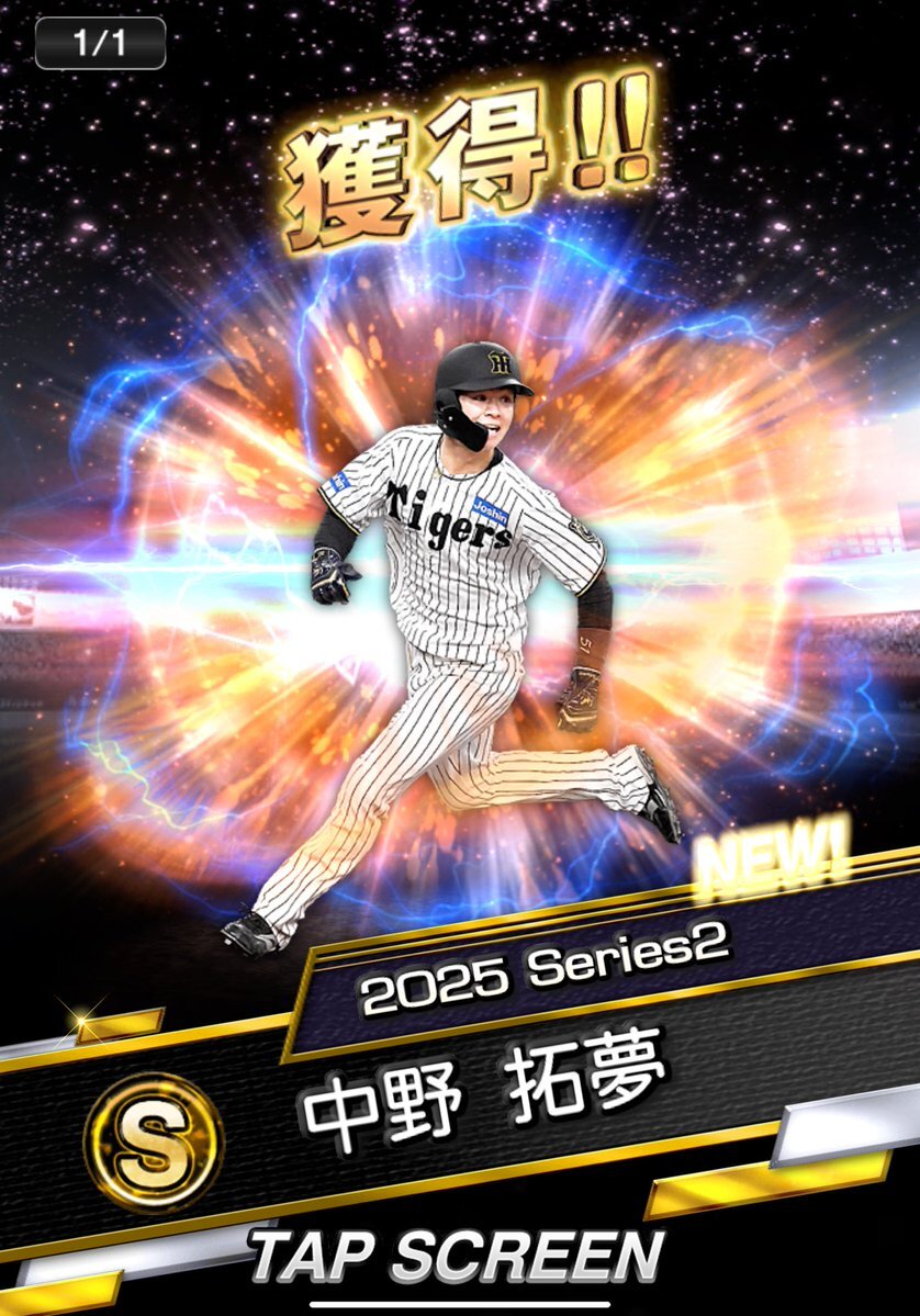 Sが確定してない100連目ラスト10連にかけてSの確定演出とたぶん自チーム確定演出見れてワンチャンあると思ったらマジで出たんだか!? しかも2枚引き 神!!!!! 写真変更でさらにかっこよ! #プロスピ #阪神純正 pic.x.com/nMvMxlvRMz
