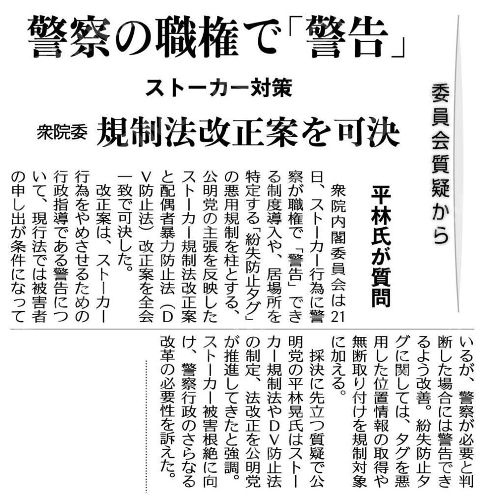 被害者本人が申し出にくい状況でも警察が動けるようになるのは、命を守るための大きな前進です。また、便利なGPSタグが悪用の道具になる怖さも感じていました。技術の進歩に合わせて法律もアップデートしていく、公明党の現場感覚が反映された改正だと思います。 #防犯 #公明党 pic.x.com/KYHpFU2161