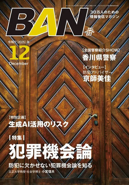 警察官の為の情報教養誌「BAN」さんに取材していただきました。BANさんは、警察官でなければわからない共感できる情報や声など、警察官のために企画、取材制作している、日本で唯一の警察職員のための『情報教養誌』だそうです。お役立てれば幸いです #防犯専門家 #防犯対策専門家 #防犯 pic.x.com/EsB70ZBH1Z