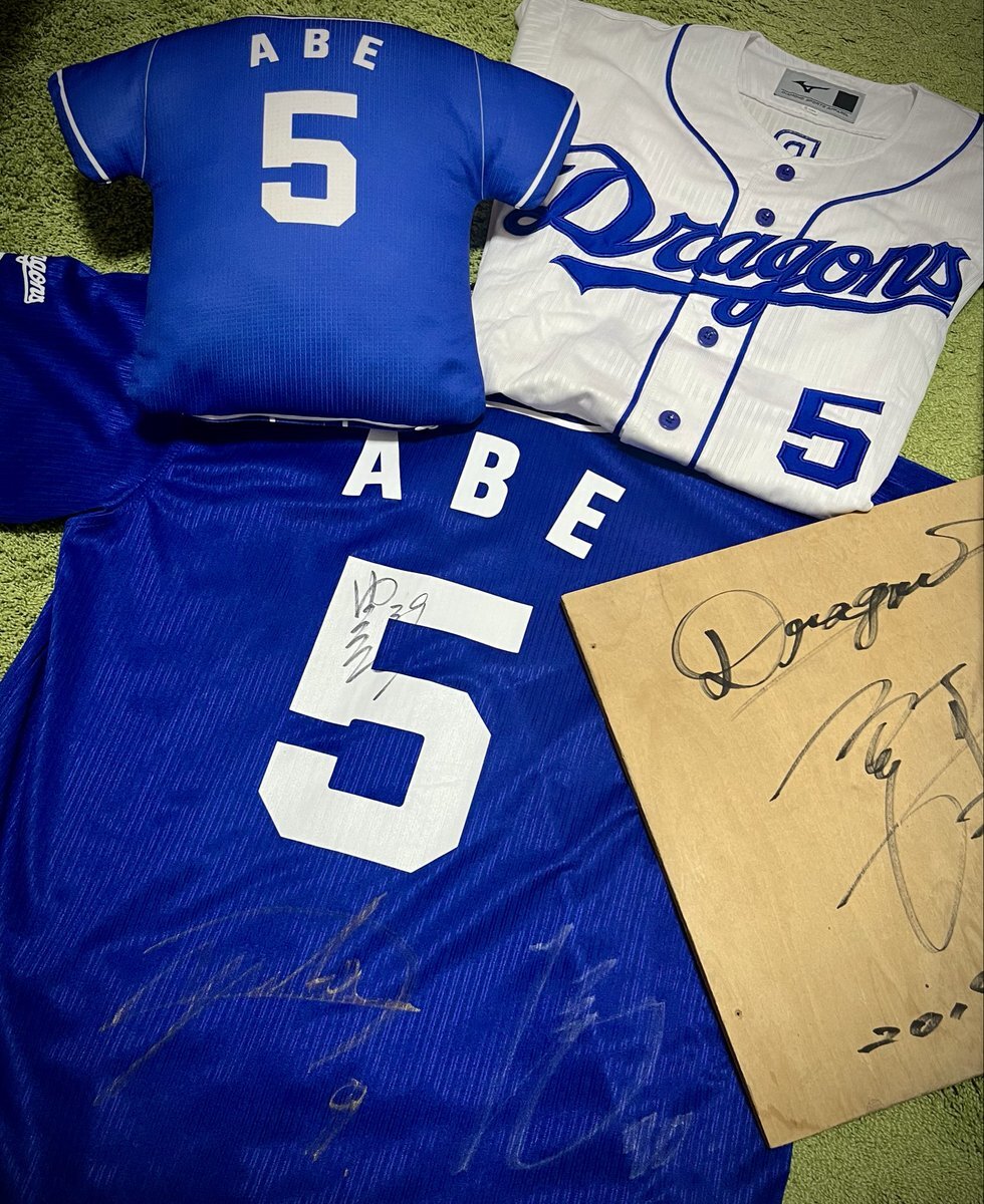 マスターのユニ買いたいので早く背番号を...🙏 こんな日が来るなんて思ってもみなかった😭マスターにはブルーのユニが似合うよ嬉しい😭👍 #阿部寿樹 #dragons