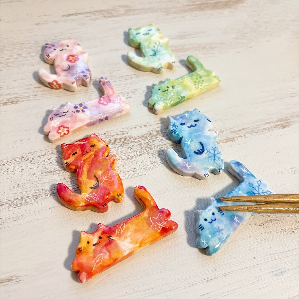 🌸12/19❄️ 水彩風 Hi !にゃんこ&とびだせ!にゃんこ 箸置きセット creema.jp/item/18338949/… 春と冬 完売していましたが再販しました! 贈り物にもオススメです🌿 お好きな季節で食卓に彩りを〜🍁 #箸置き #陶芸 #再販 pic.x.com/3p5Ogcu1pX