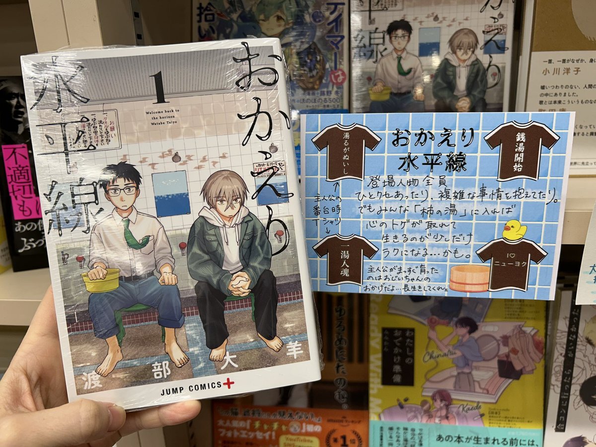 【推し本フェア】 『#おかえり水平線 』(#集英社 ) #渡部大羊 さん著 登場人物全員、ひとクセあったり、複雑な事情を抱えてたり。 でもみんな「柿の湯」に入れば、心のトゲが取れて生きるのが少しだけラクになる…かも。♨️ #名古屋空港店の推し本 pic.x.com/0pvJCbvVmG
