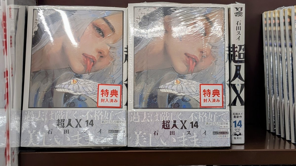 💛BOOK情報💛 本日発売✨ #超人X 14巻 #石田スイ #集英社 #TSUTAYAオリジナル 特典ついてます❤️ #コミック と一緒についてますので そのままお買い求めいただけます❤️❤️ 無くなり次第終了です❣️ ご来店お待ちしております😊❤️ pic.x.com/s7ml9SJOsL x.com/shop_TSUTAYA/s…