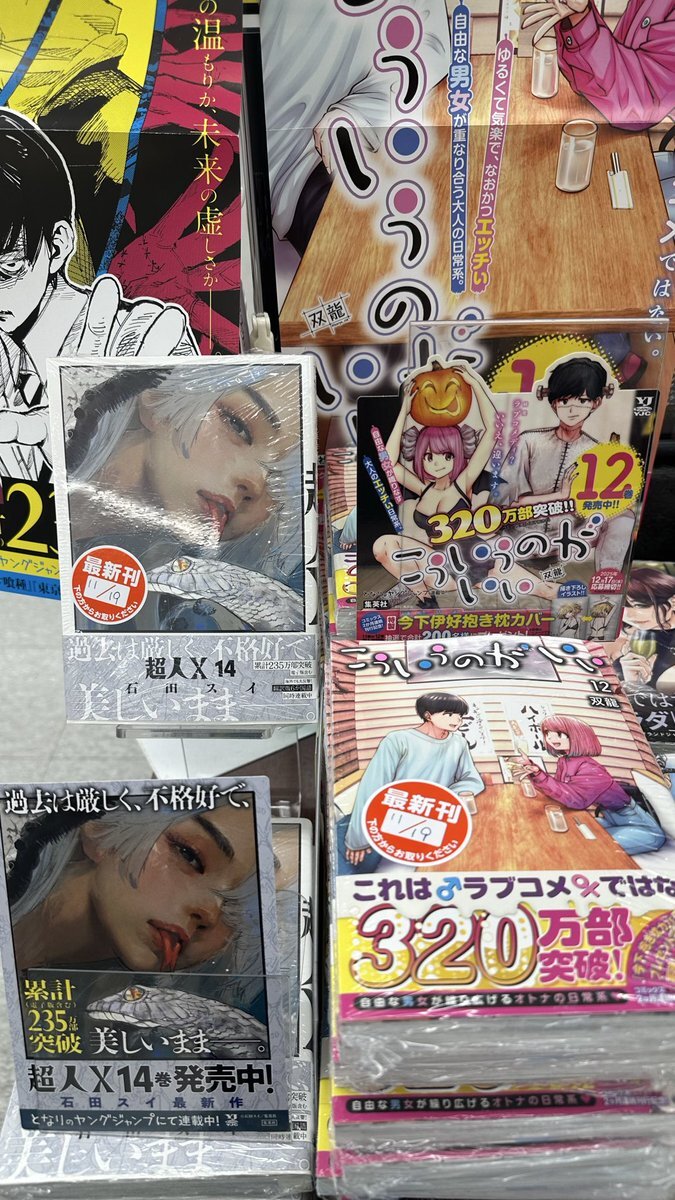 🌟本日新刊情報🌟 本日は集英社青年コミックの発売日です✨️ 「#こういうのがいい12巻」「#釣って食べたいギャル澤さん4巻」「#超人X14巻」「#ドラフトキング23巻」などなど‼️ 他にもゆるキャン△やブルーロックの最新刊も発売中ですので皆様のご来店お待ちしております😊💕 #コミック #集英社 pic.x.com/sLDtzNZ9tF