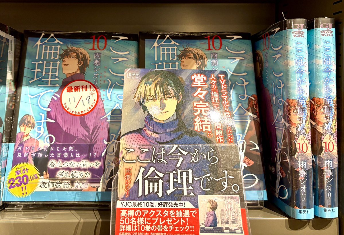 📢人気シリーズ最新刊📢 🌟完結🌟 善く生きる術を考え続けた教師最終巻‼️ ✅#ここは今から倫理です。 最新10巻 #雨瀬シオリ 青年コミック新刊コーナーにて展開中‼️ ぜひチェックしてみてください🎶 #集英社 #三洋堂書店 #瑞浪 pic.x.com/LZkhvDLy9M