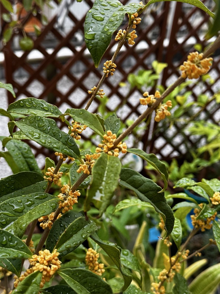 おはようございます☀️🙋♀️雨だけど、お隣さんの金木犀今年も立派…とベランダに出たら、まぁいい香り(*^^*) 我が家の金木犀も20年以上モノで立派ですが香りがいまいち(^_^;) #金木犀 #香り #雨の朝 pic.x.com/xNM7IsCuyx