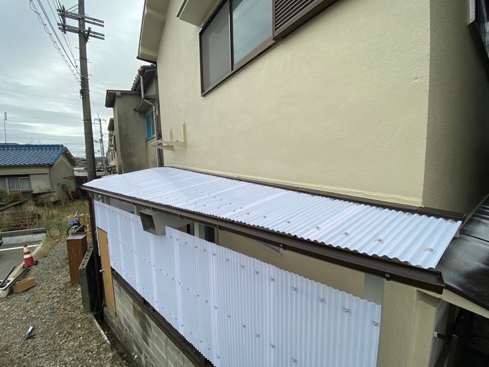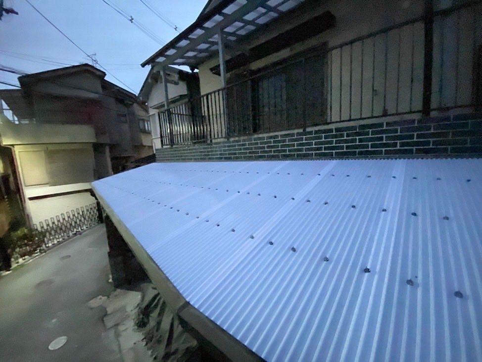 大阪府枚方市にて、瓦屋根をカラーベストコロニアルクァッドに葺替え、波板をポリカ波板に、雨樋は塩ビ製105アイアン半丸に取替えしました。 #屋根リフォーム #雨漏り #カラーベスト #瓦屋根 #葺替え #雨樋工事 #雨とい #波板 #ポリカ #枚方市 #借家 #屋根工事 #コロニアル #板金屋 pic.x.com/GRRK8lXahi