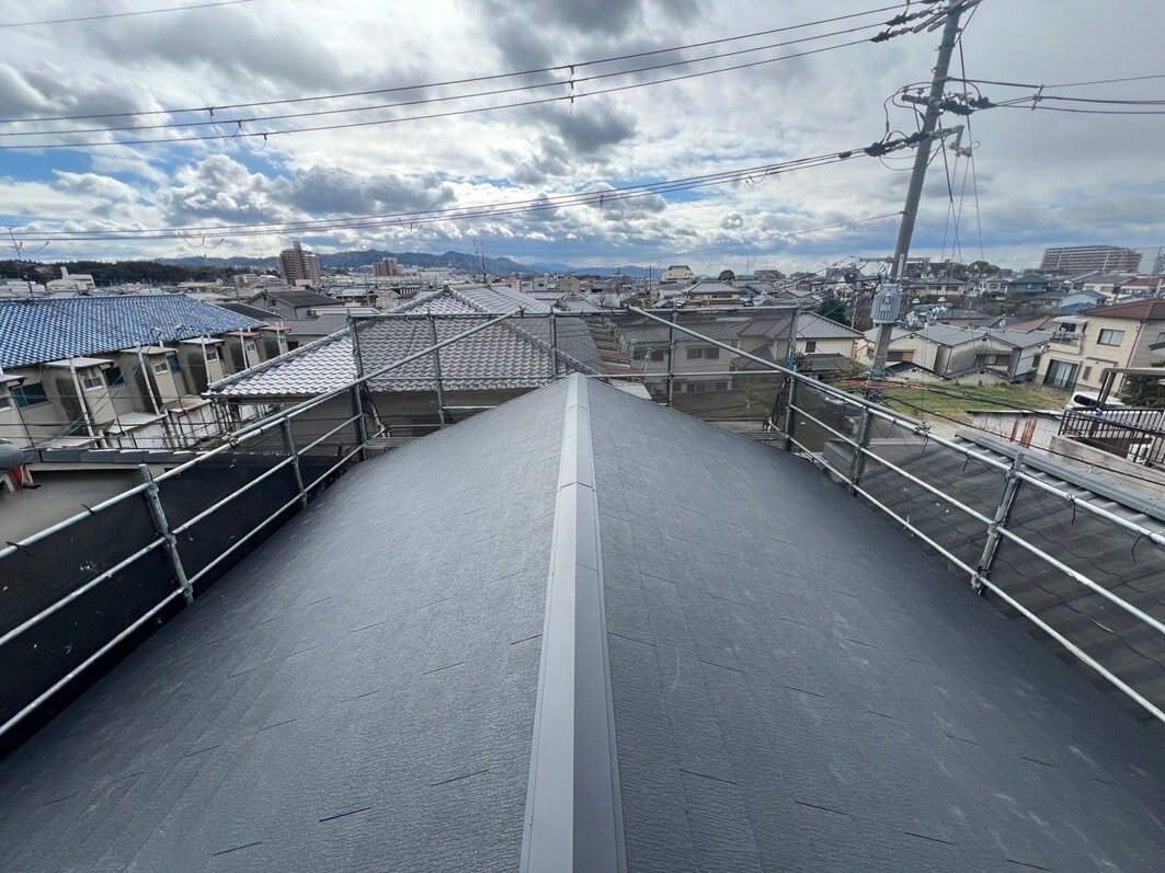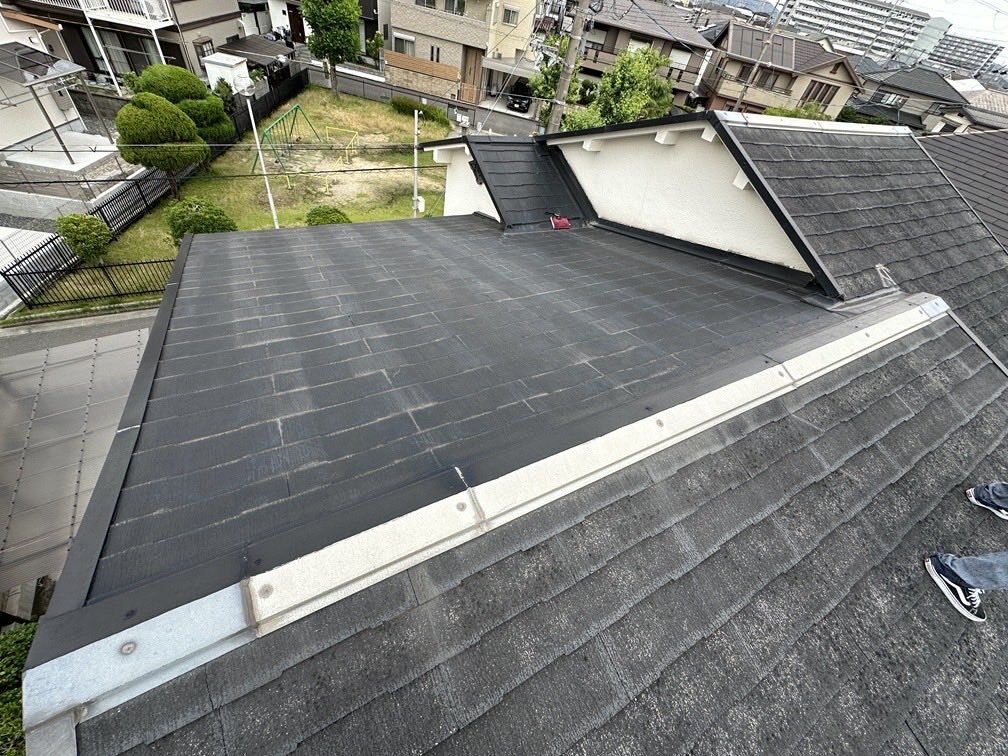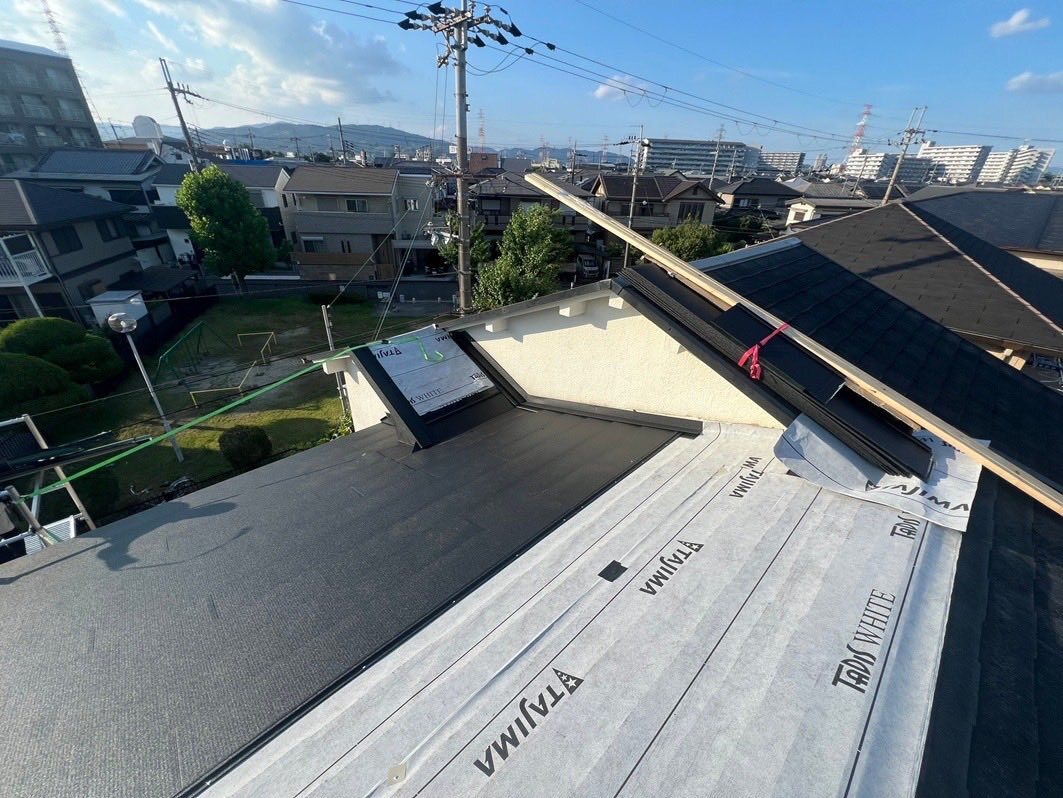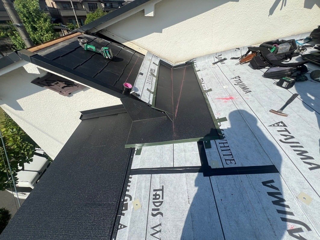 大阪府枚方市にて、カラーベスト屋根が雨漏りしているので一部カバー工法でガルバ断熱ルーフシルキーG 2を施工しました。 #カラーベスト #雨漏り #屋根工事 #屋根修理 #カバー工法 #ガルバリウム鋼板 #シルキーG2 #枚方市 #屋根リフォーム #板金屋 #ハッスルタワー #ローリングタワー #谷樋 pic.x.com/rrTaqN5i98