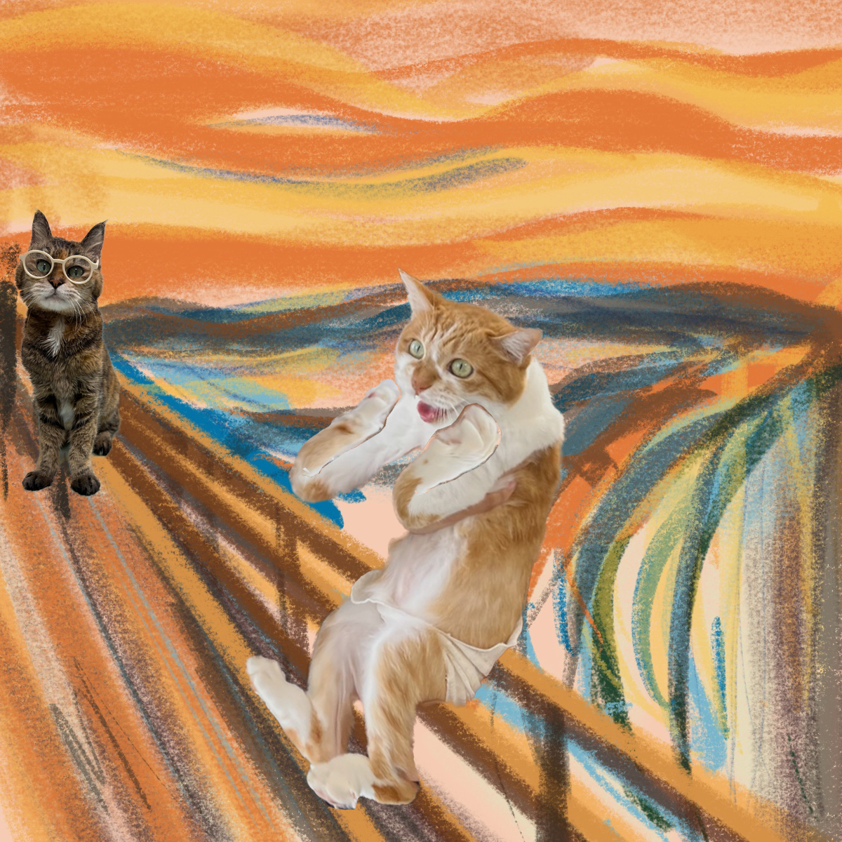 秋といえば芸術の秋ですね!くりちゃんを絵画、ムンクの叫び風にしてみました😱 #無足場工法 #外壁工事 #雨漏り #漏水 # #看板猫 pic.x.com/Ibph2HtQ9h