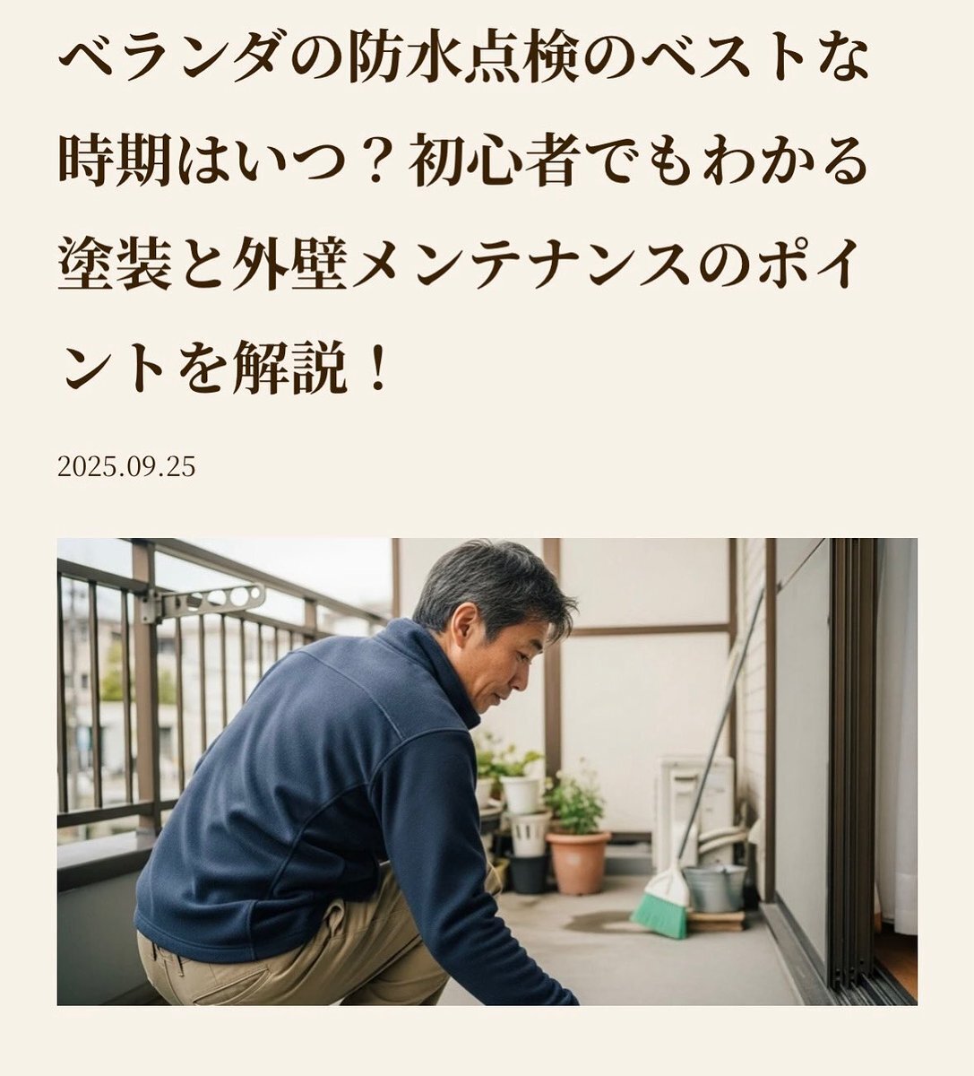 ベランダの防水点検のベストな時期はいつ?初心者でもわかる塗装と外壁メンテナンスのポイントを解説! 詳しくは株横井ホームページをご覧ください。 yokoi-tosou.jp/blog/when-to-c… #塗装防水無料相談窓口 #飯田市の外壁塗装 #株式会社横井 #工場塗装 #リフォーム会社 #雨漏り #屋根工事 #雨樋 pic.x.com/ZTETT0VVsm