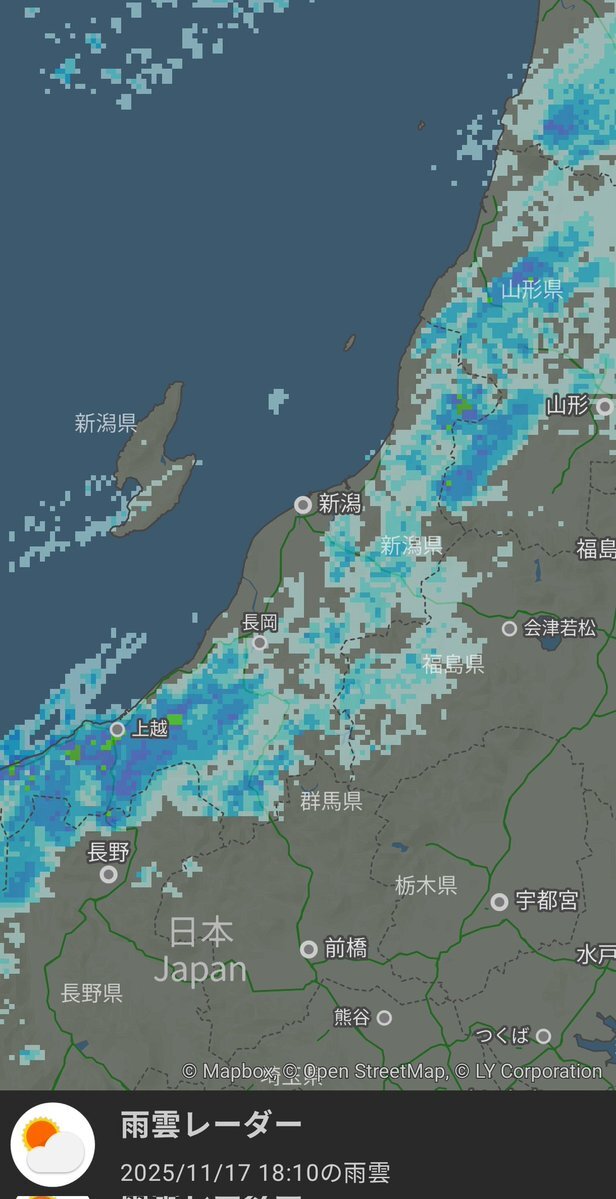 2025/11/17 16:20ごろの各地の #雨雲レーダー の様子。 ⬇️日本全国の雨雲レーダー・天気予報・ライブカメラ camera-map.com/amagumo_map x.com/web_camera/sta…