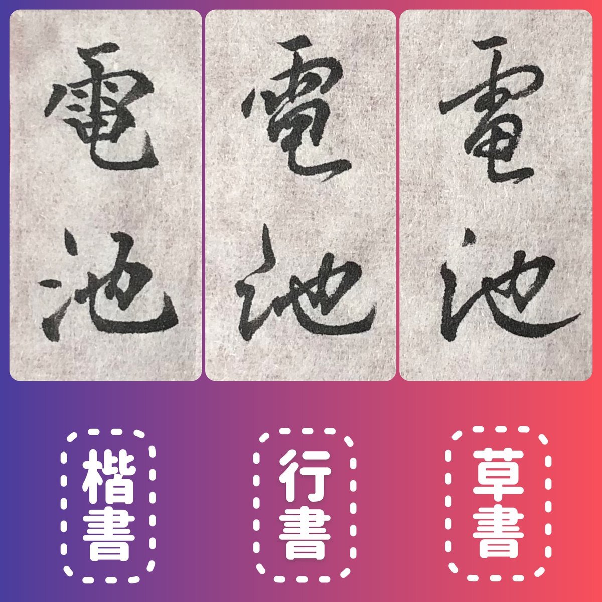 本日は #バッテリーの日 ということで #電池 を三書体で書いてみました。 #ツっちゃんの手書き筆文字 #手書き #筆文字 #書道 #shodo #calligraphy #書写 #楷書 #行書 #草書 pic.x.com/ogVTn2kANG