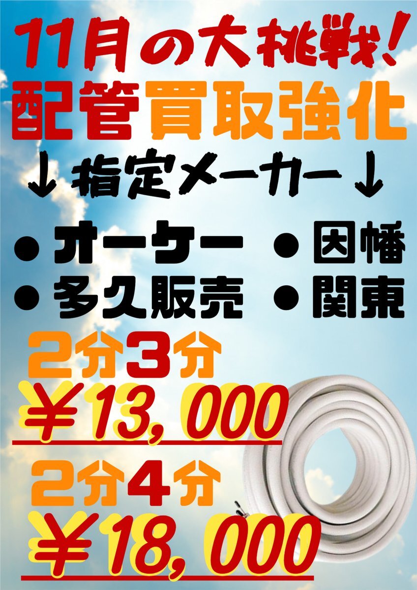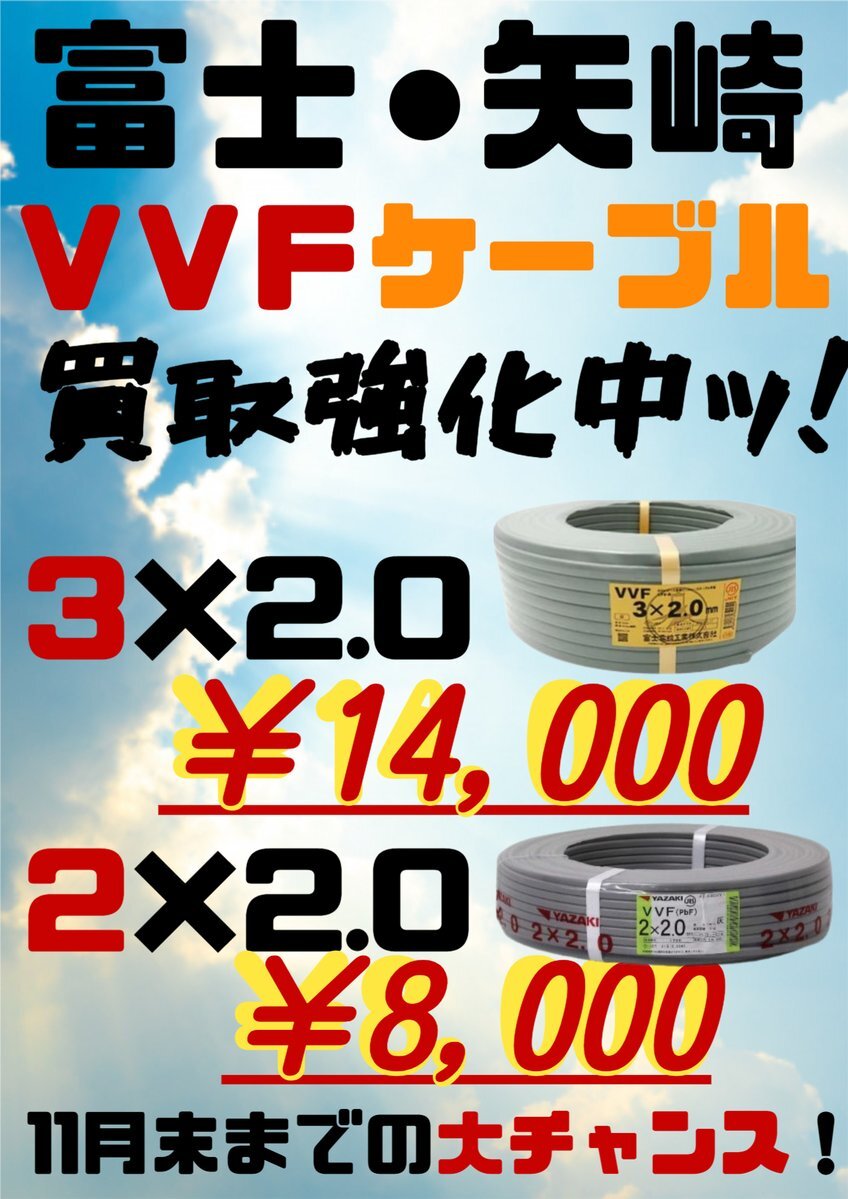 工具だけではなく電線や配管も買取金額がUPしました! メーカー指定はございますが、VVFケーブルは富士と矢崎の3×2.0/2×2.0の金額上がりました! 配管も掲載画像の4つのメーカーで、2分3分と2分4分の買取金額がUP! 工具だけではなく、電線や配管のお買取りもお待ちしております! #電線 #配管 pic.x.com/5r2niTYK0R
