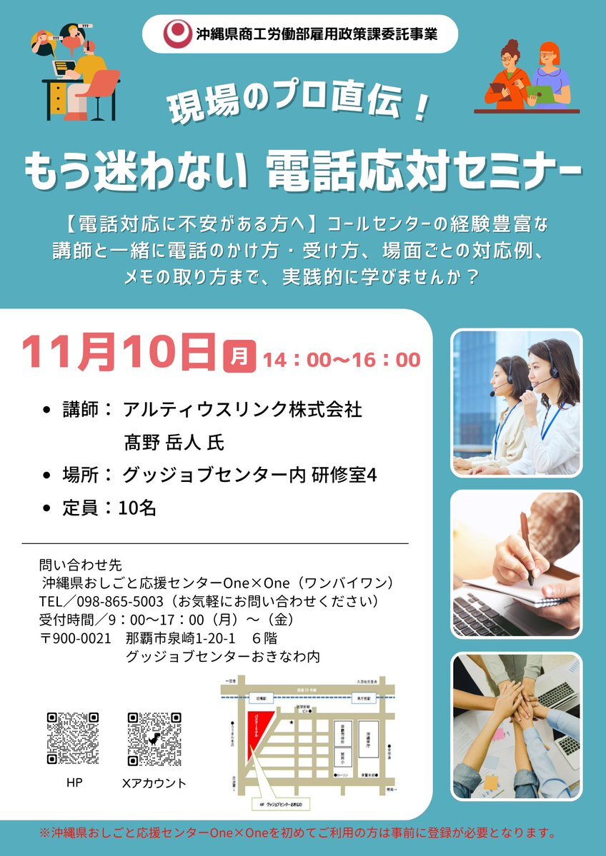 \11月10日㊊開催!参加申し込み受付中/ 現場のプロ直伝!もう迷わない電話応対セミナー 電話のかけ方、受け方、場面ごとの対応例などが実践的に学べます!📞💬 ※セミナー参加には事前登録が必要です。 お電話でお問い合わせください! #就職 #スキルアップ #沖縄 #電話応対セミナー #電話応対 pic.x.com/7eBQXgtCIr