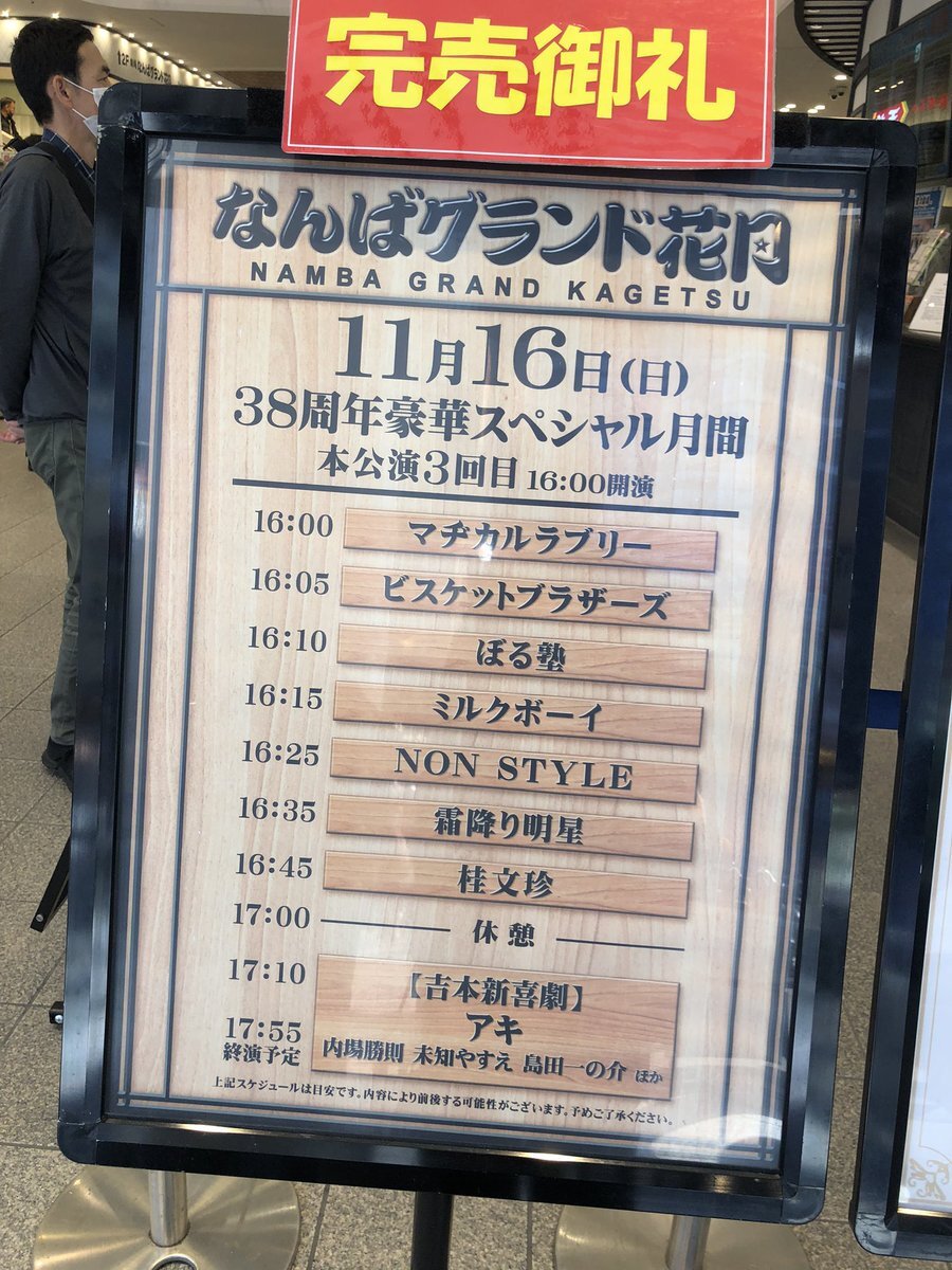 何十年かぶりのなんばグランド花月。 38周年豪華スペシャル月間で今日の演者は チャンピオンばかりで凄かった。 ミルクボーイ、NON STYLE、霜降り明星は生で漫才見れて良かった。いや〜 #ぼる塾 #マヂカルラブリー #ビスケットブラザーズ #ミルクボーイ #NONSTYLE #霜降り明星 #桂文珍 #吉本新喜劇 pic.x.com/Wgn9wrm7uQ