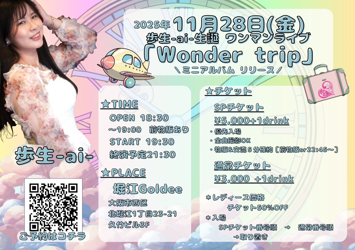 2日続きのライブ✨ 兵庫県川西市のライブハウス #露依楼囲 様 なかなか手売りチケット🎟️が😥 残り23枚 9月中に20枚羽ばたいてほしい、、が大ピンチ😥 チケット🎟️取置、予約は→歩生ちゃん予約ページ docs.google.com/forms/d/e/1FAI… #堀江Goldee(@HorieGoldee)様 よろしくお願いします😊✨ #あいちーず pic.x.com/f8VQiXoJeR