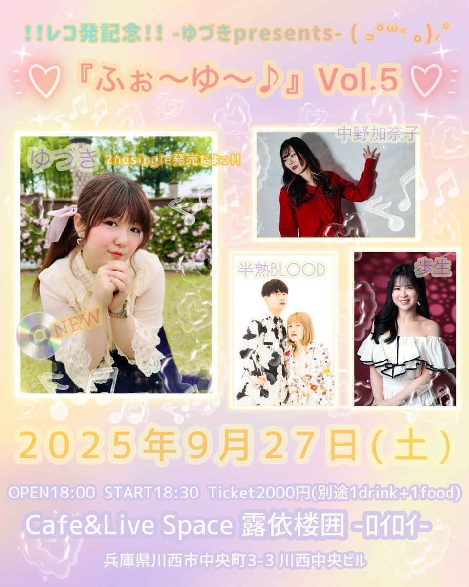ゆづきちゃん主催 『ふぉ〜ゆ〜♪vol.5 レコ発💿』 #露依楼囲(@roiroinioideyo) #歩生(@aichin_aichina)ちゃん 11.28の生誕ワンマンライブ✨ お祝いをするだけでなく、歩生ちゃんと将来に向けて楽しむ期待感が、感じられる😊✨ 見てもらってたくさんの方に感じてもらいたい😊✨ #あいちーず pic.x.com/gzCD7hw4yQ