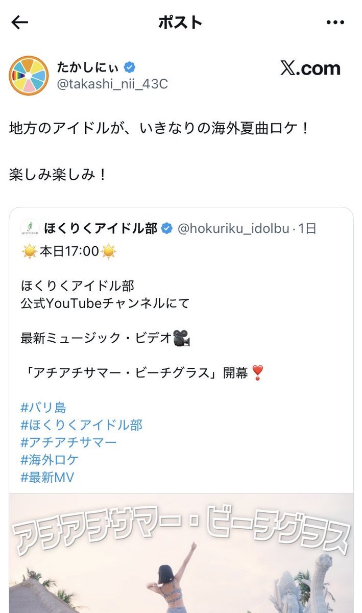 (地方のアイドルが! 地方のアイドルのくせに! いきなり海外夏曲ロケ! 地方のアイドルのくせに!) 常に上から目線の発言なのであちこちでハレーションを起こしてることわかって欲しいけど伝わらないですよねー😇 #たかしにぃ #ほくりくアイドル部 #ラフラフ #ラフり隊 #青春高校3年C組 pic.x.com/7jGAJGWOnz x.com/foolafoolamob/…