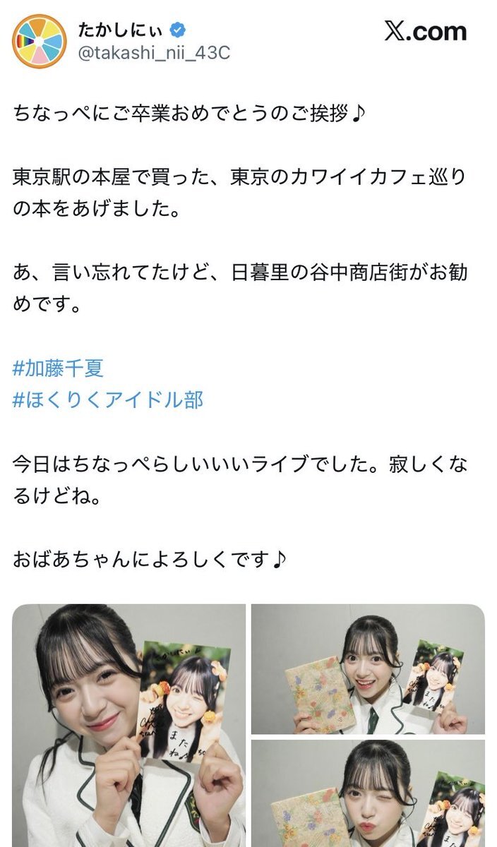 『翔んで埼玉』はフィクションなので、埼玉県民の爺でも普通に都内の本屋で買い物できます😂 とはいえ都民のフリをしている埼玉県爺に、これみよがしに東京情報を押し付けられるちなっぺお疲れ様でした😇 #たかしにぃ #ほくりくアイドル部 #加藤千夏 #ラフラフ #ラフり隊 #青春高校3年C組 #詐称都民 x.com/foolafoolamob/…