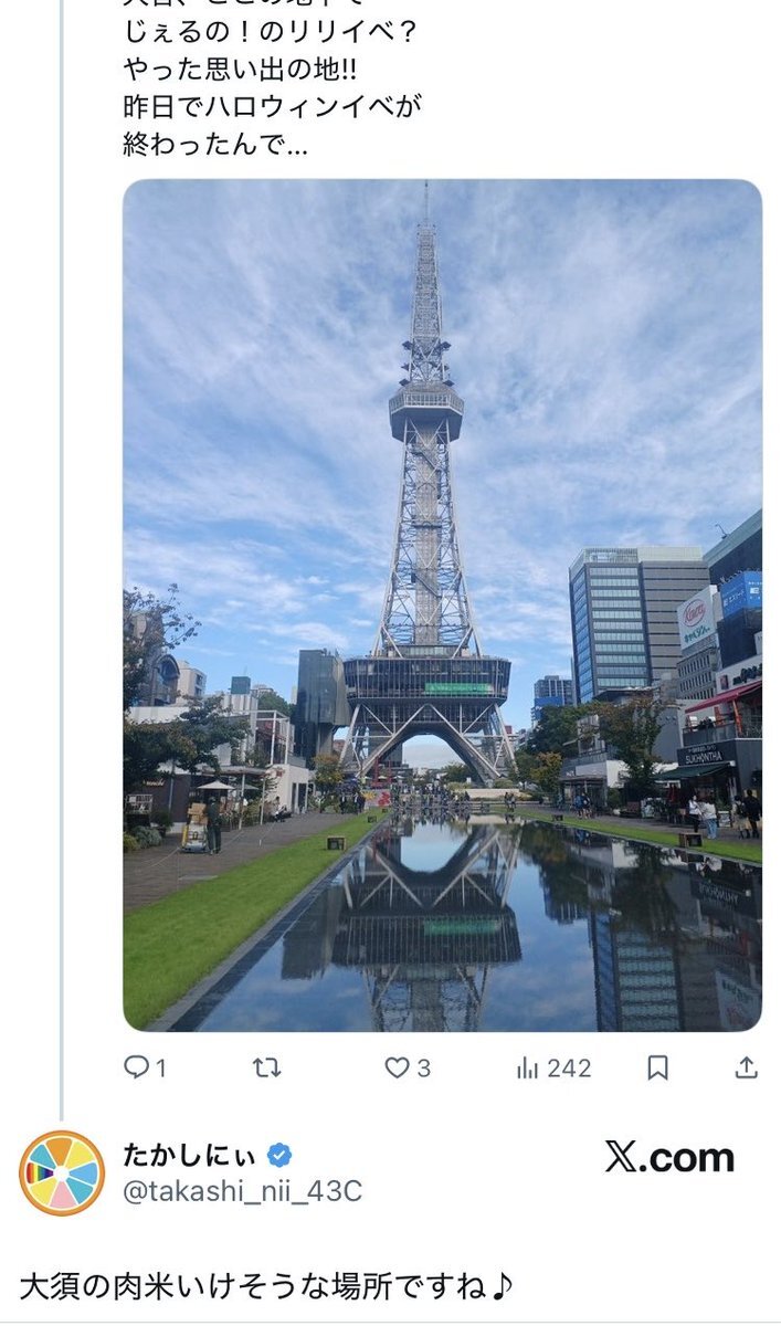 いつもの爺の肉米ムーブきましたー! 名古屋もお世辞抜きでおいしいものたくさんある食い道楽の街なのに紹介するのはいつも同じ店ばかり😂 名古屋のことバカにしてるのか、埼玉県爺のバカのひとつ覚えなのかのどちらかです! #たかしにぃ #ほくりくアイドル部 #ラフラフ #ラフり隊 #青春高校3年C組 x.com/foolafoolamob/…