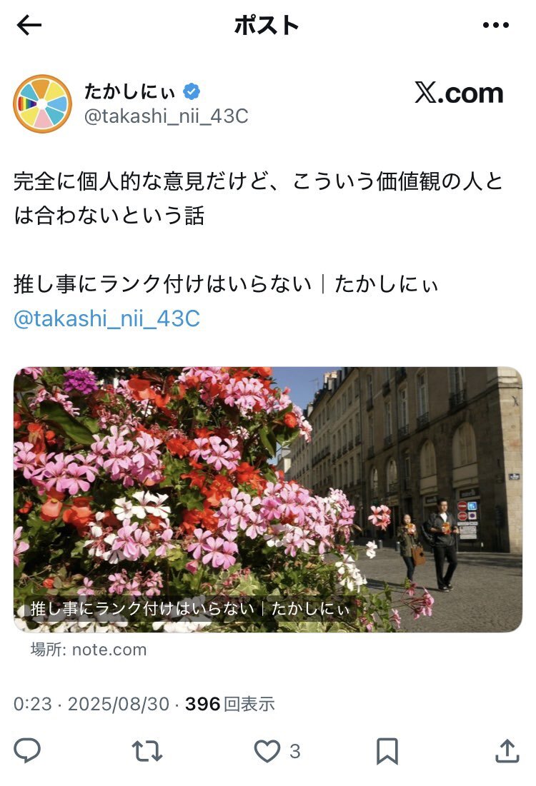 完全に個人的な意見だけど、普通の人はこういう価値観の爺とは合わない🤔 ランク付けはいらないって、自分がNo. 1という彼のアティテュードと矛盾してる 常に上から目線の発言なのであちこちでハレーションを起こすんです😇 #たかしにぃ #ほくりくアイドル部 #ラフラフ #ラフり隊 #青春高校3年C組 pic.x.com/APOd65Xq4P