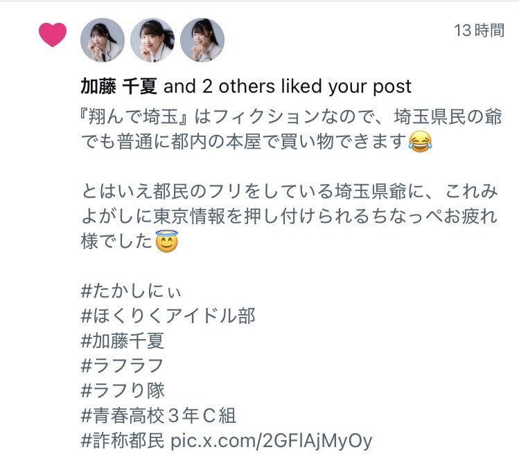 ちなっぺ、姫、まおにゃんからいいねをいただきましたー! わー!! あんやとねー🙏 ちなっぺお疲れ様でーす たかし爺も一緒にいいねしてたらほくりくアイドル部の皆さんと並べたのにねえー!☺️ #たかしにぃ #ほくりくアイドル部 #ラフラフ #ラフり隊 #青春高校3年C組 #詐称都民 pic.x.com/HnwgJ04e3M x.com/foolafoolamob/…
