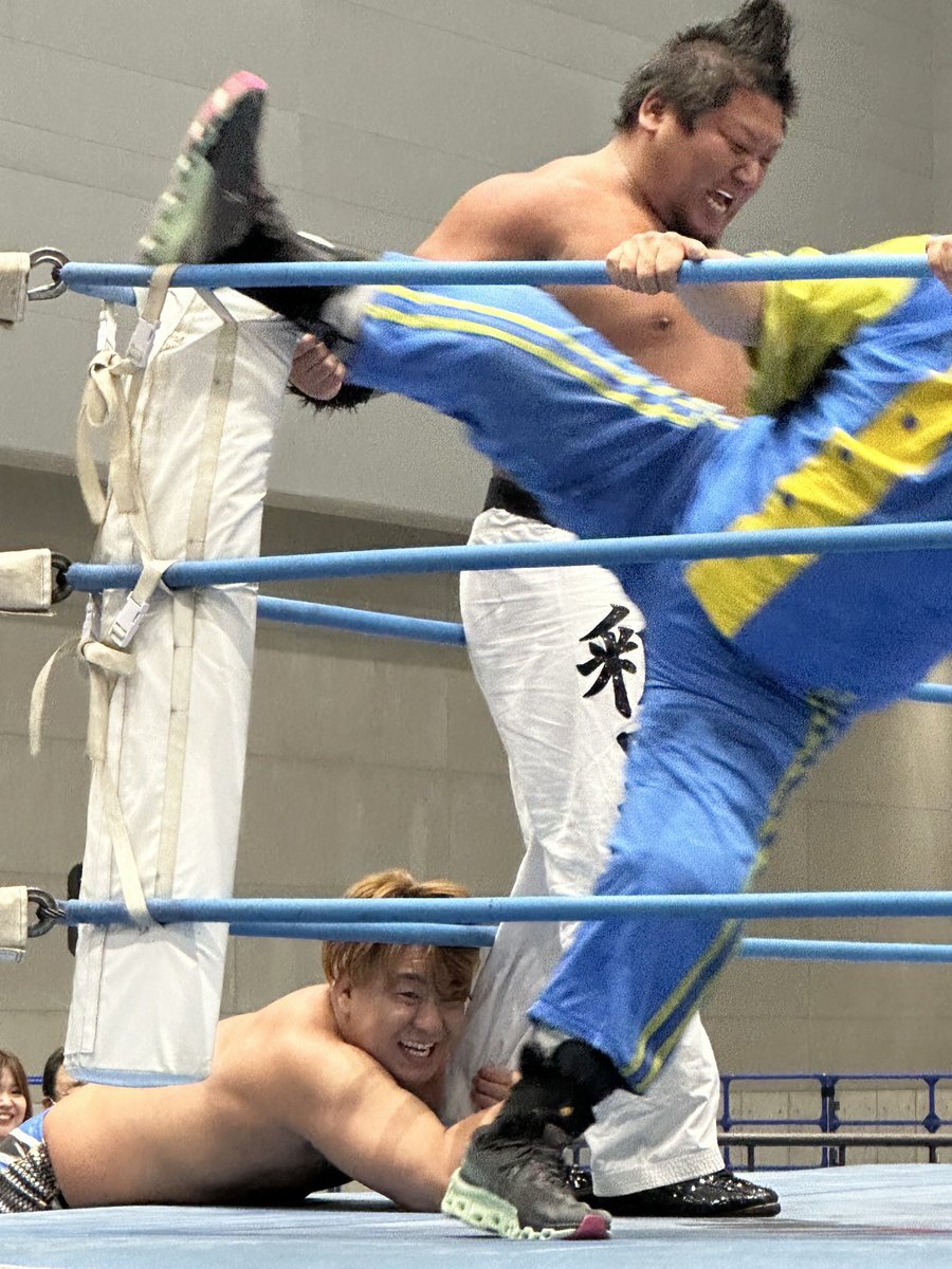 2025.11.16 Gメッセ群馬展示ホールA セキチューを四方に見せつけに来てくれたけどロープで隠れてしまいましたすみません!!!! #ajpw #青柳優馬 選手 pic.x.com/sFGN9HFLTR