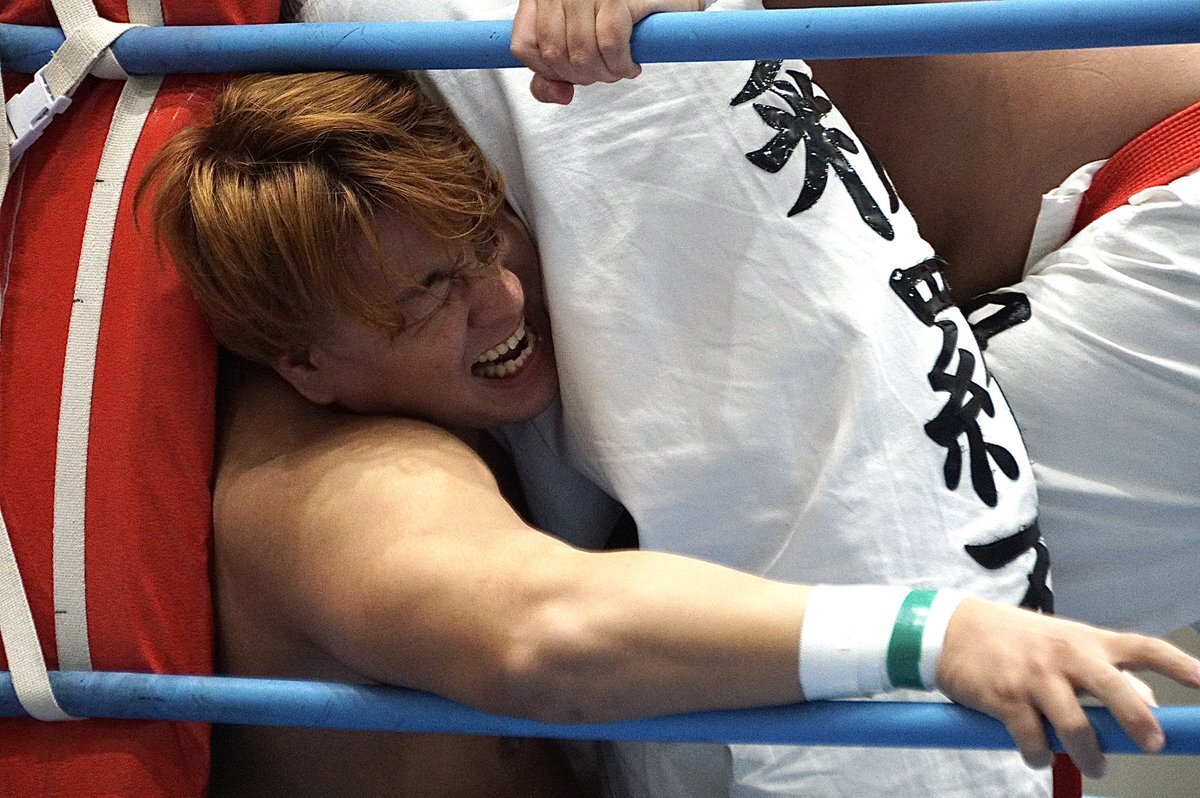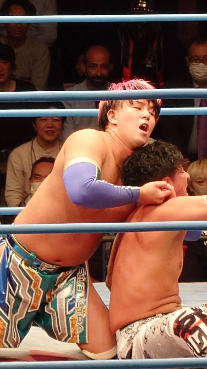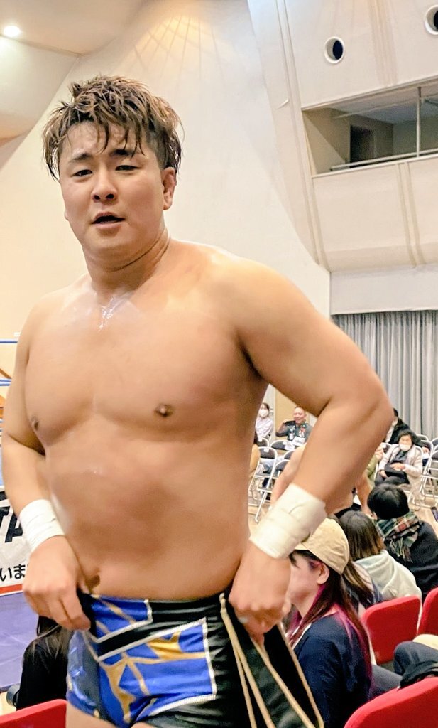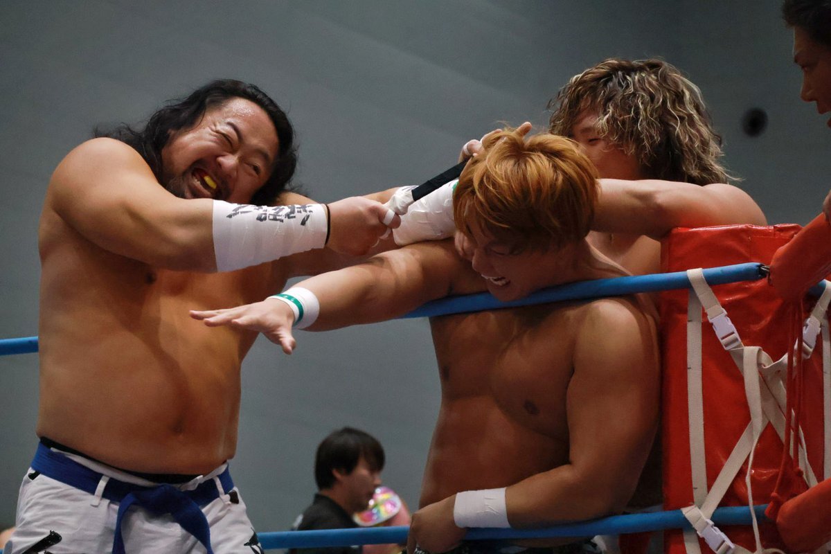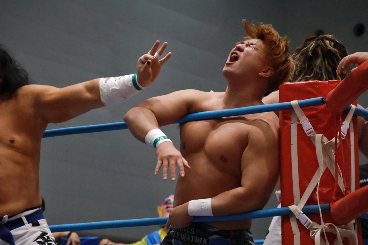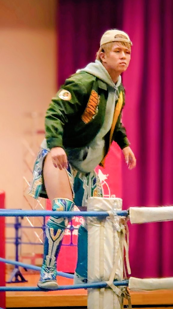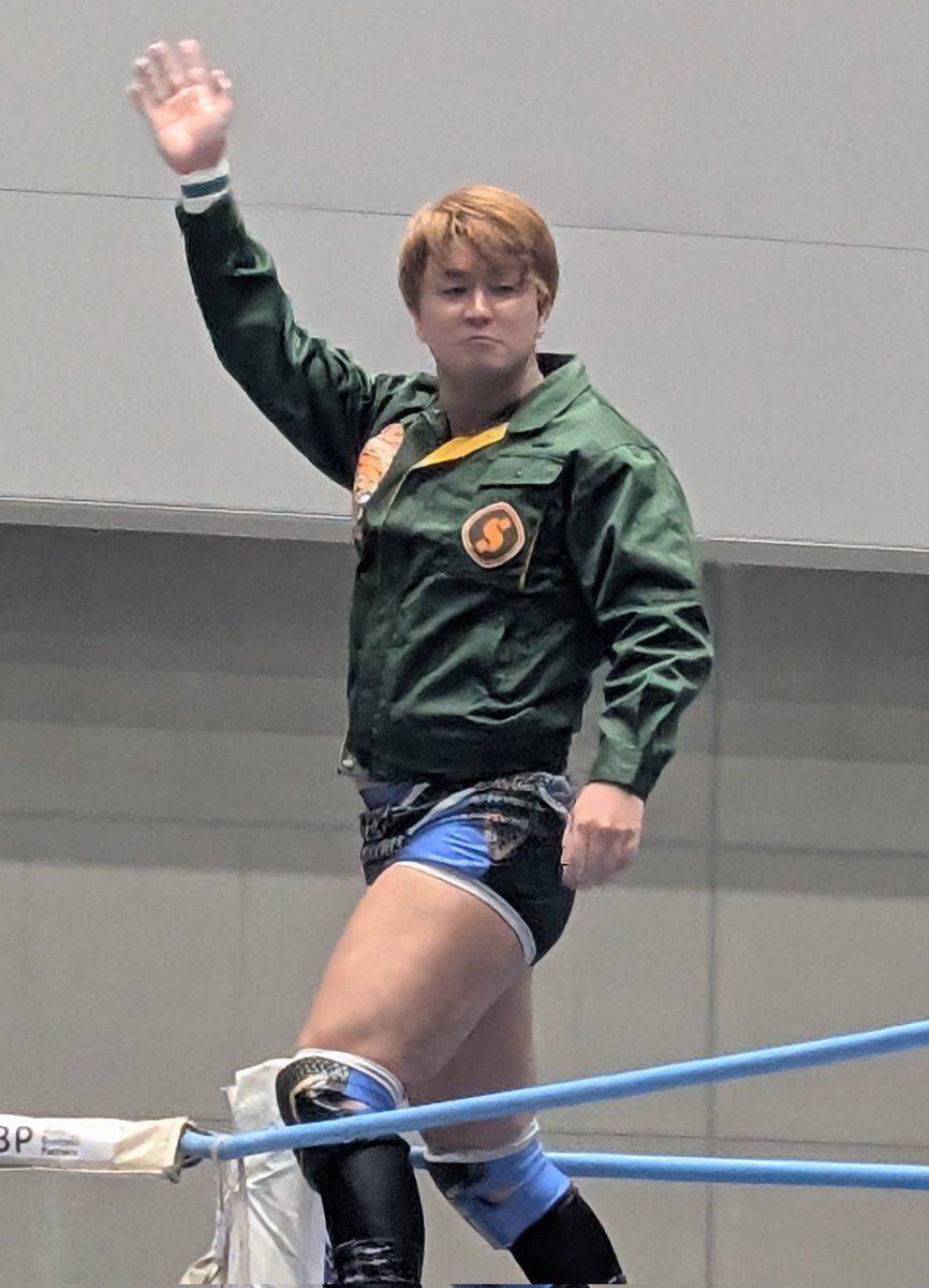 #ajpw を初めて観戦した方に「元々ここの社員だった方が夢を追いかけるために退職し」的なサクセスストーリー(デマ)を聞かせたら信じてしまいそうな程、親和性たっぷりの着こなし。 #青柳優馬 x.com/attack_on_yuma…