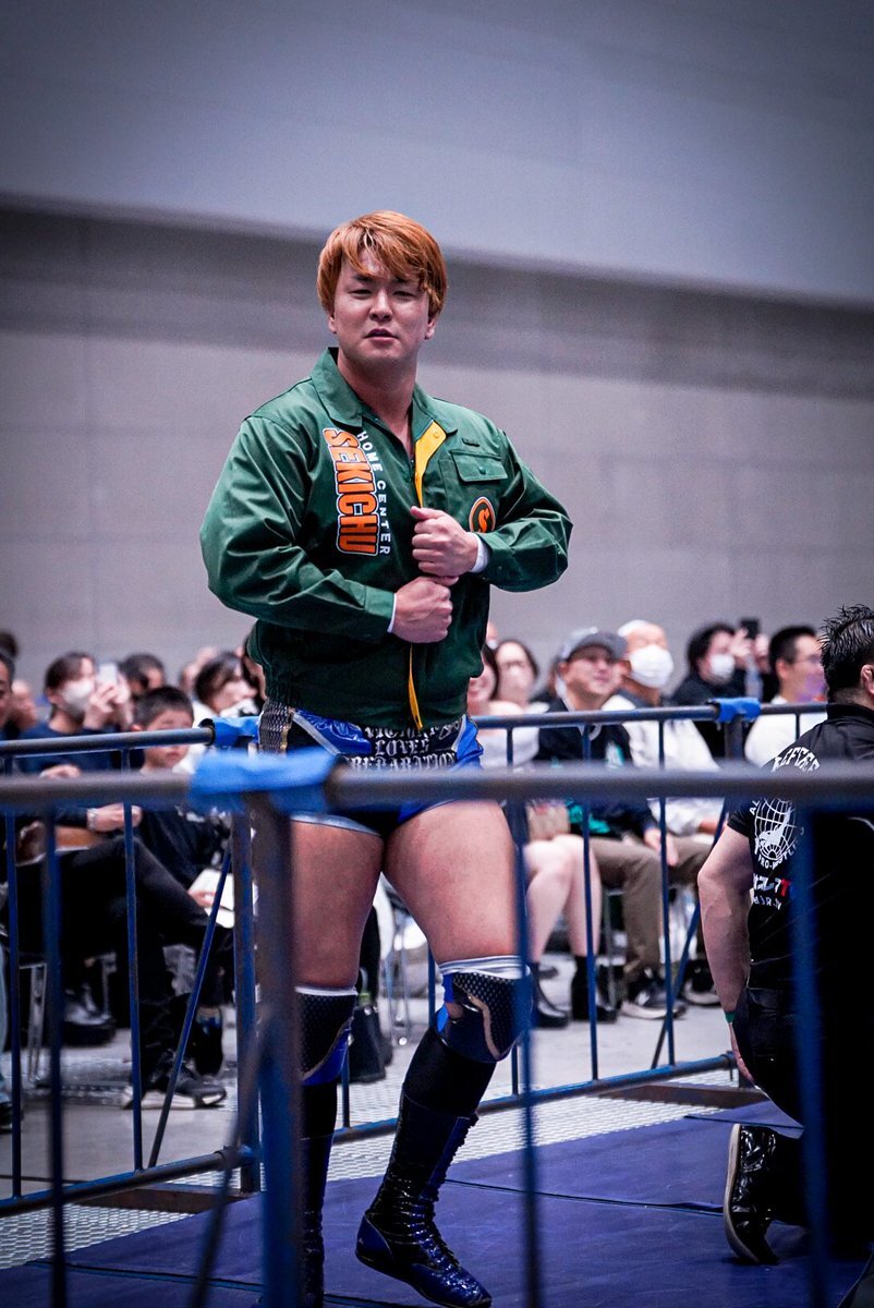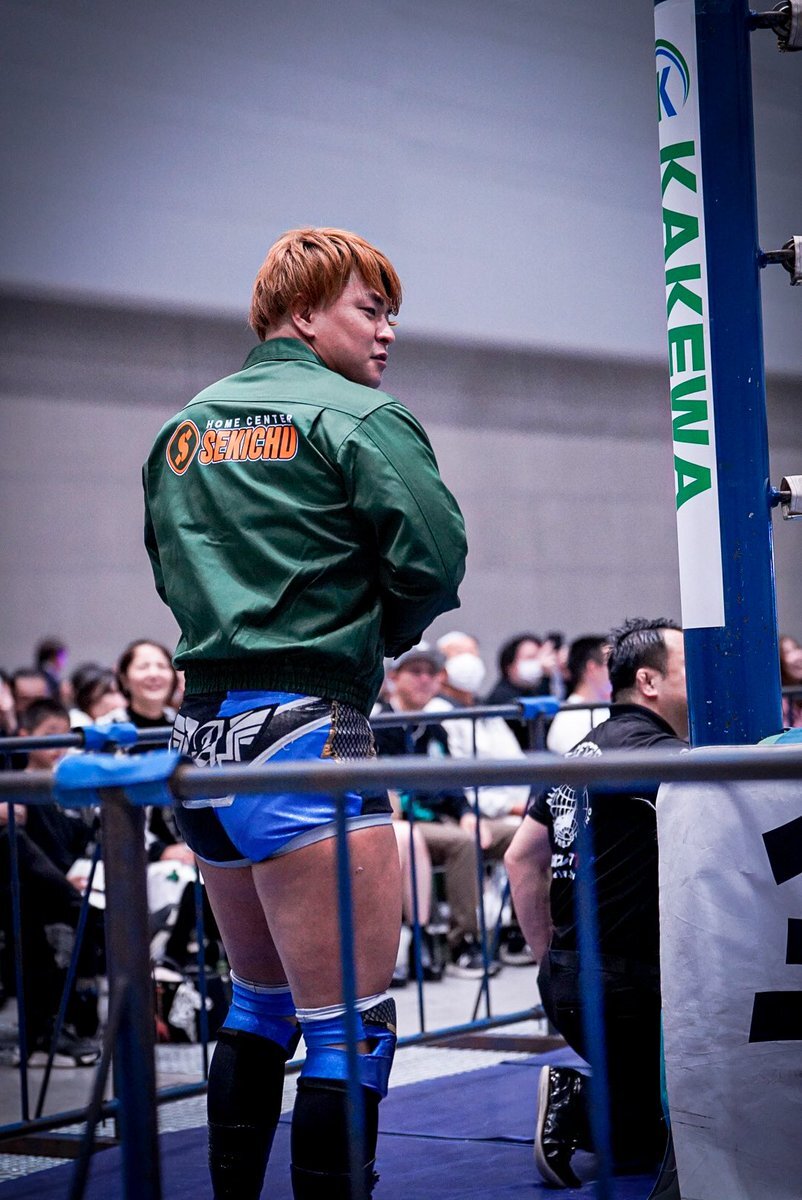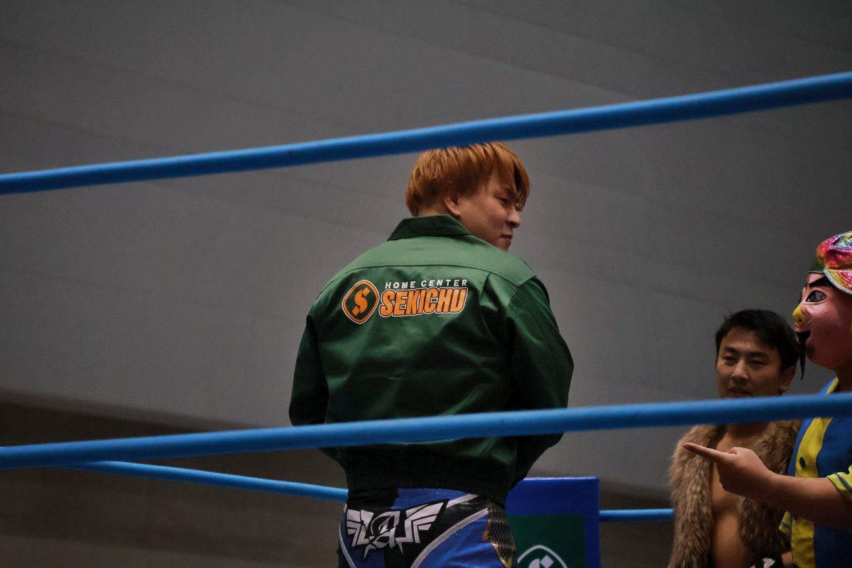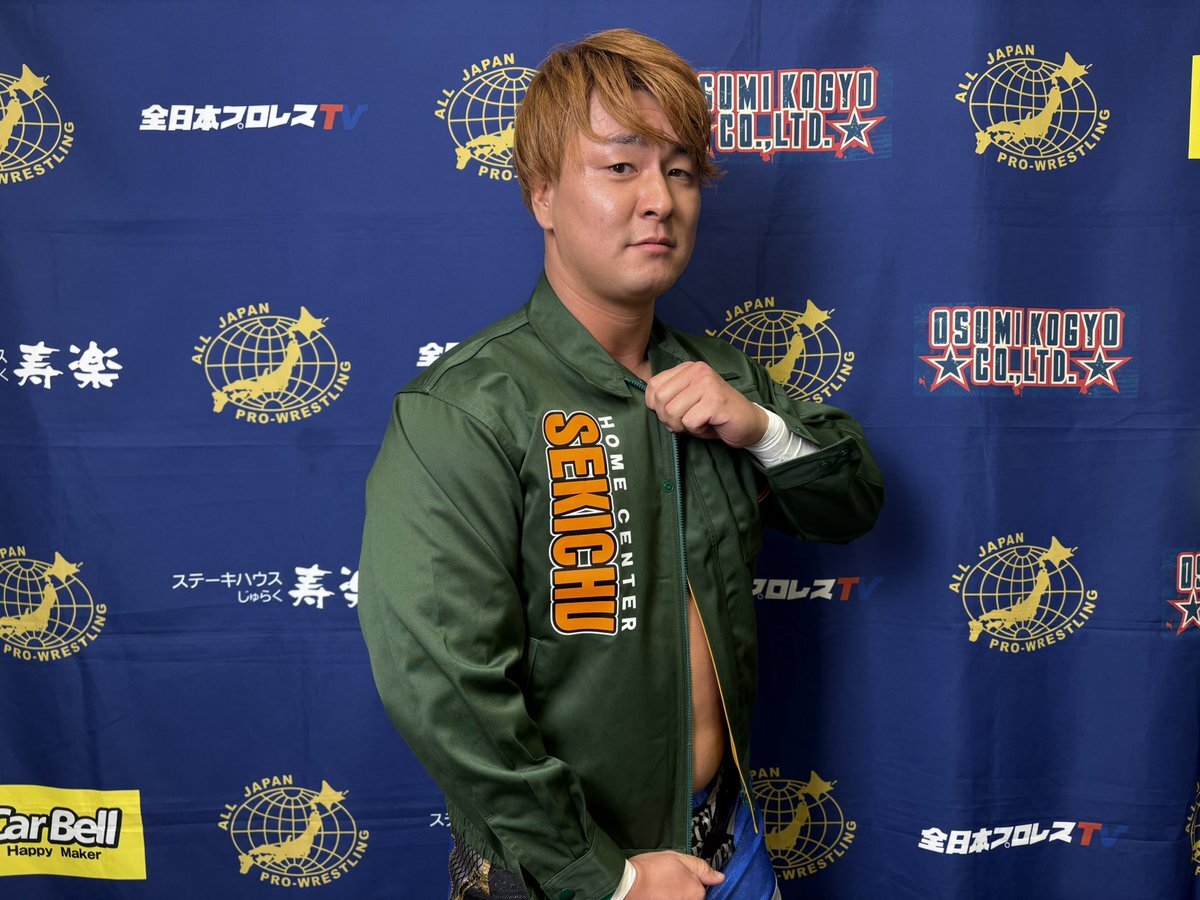 全日本プロレス11.16高崎。 高崎市に本社を置くホームセンター「セキチュー」のジャンパーを着て入場する青柳優馬選手。 非常にお似合い。 #青柳優馬 #ajpw pic.x.com/ia3Q7hWQUE