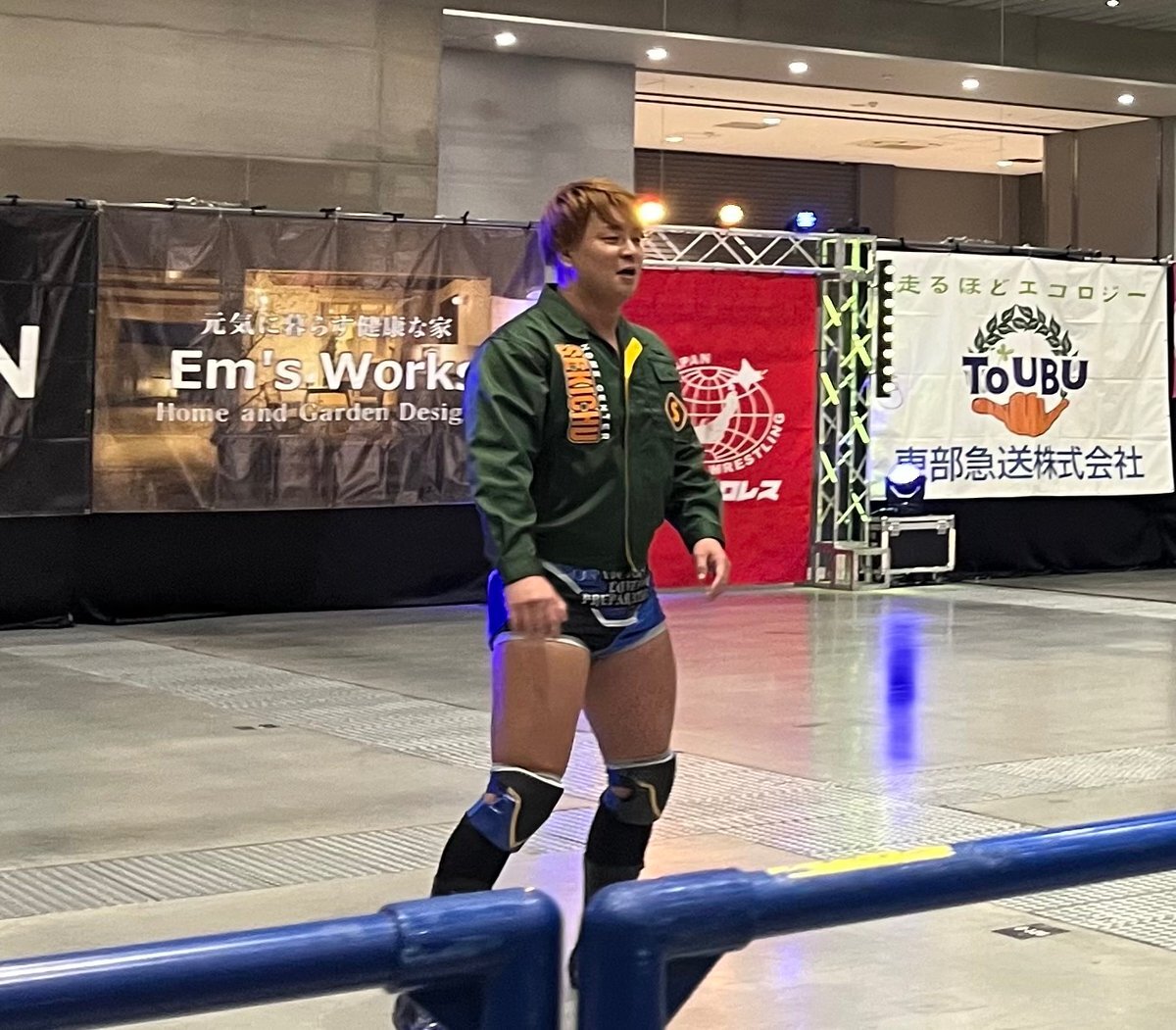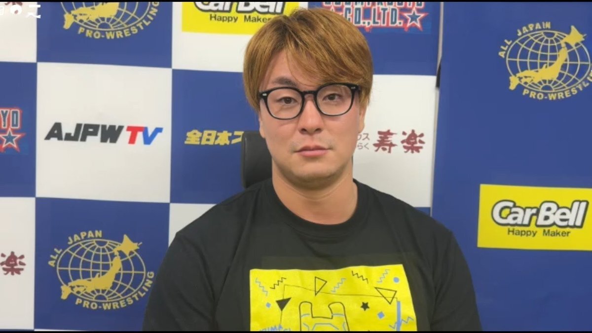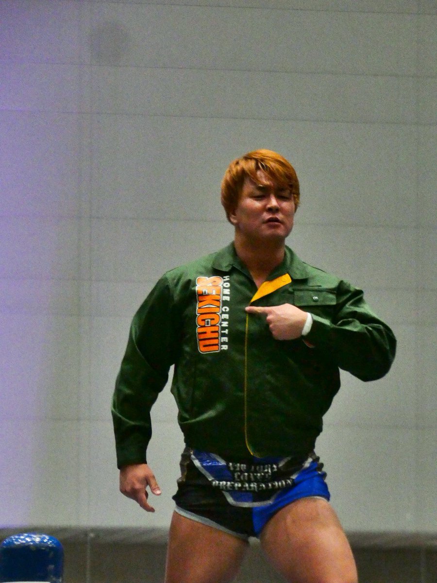 全日本プロレス11.16高崎。 高崎市に本社を置くホームセンター「セキチュー」のジャンパーを着て入場する青柳優馬選手。 非常にお似合い。 #青柳優馬 #ajpw pic.x.com/ia3Q7hWQUE