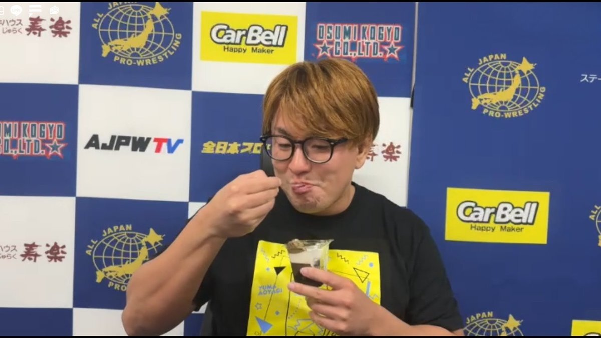 FC配信つづき 「どうせ勝手に撮ってるんだろ?」 …はい そのとおりッ!! スクショタイムと言われなくてもバースデーケーキ代わりの「ほうじ茶パフェ(セブンの新商品)」食べてるトコロ、撮ってましたよ♪ #CLUBAJPW #ajpw #最強タッグ2025 #青柳優馬 pic.x.com/0uATMFloT9