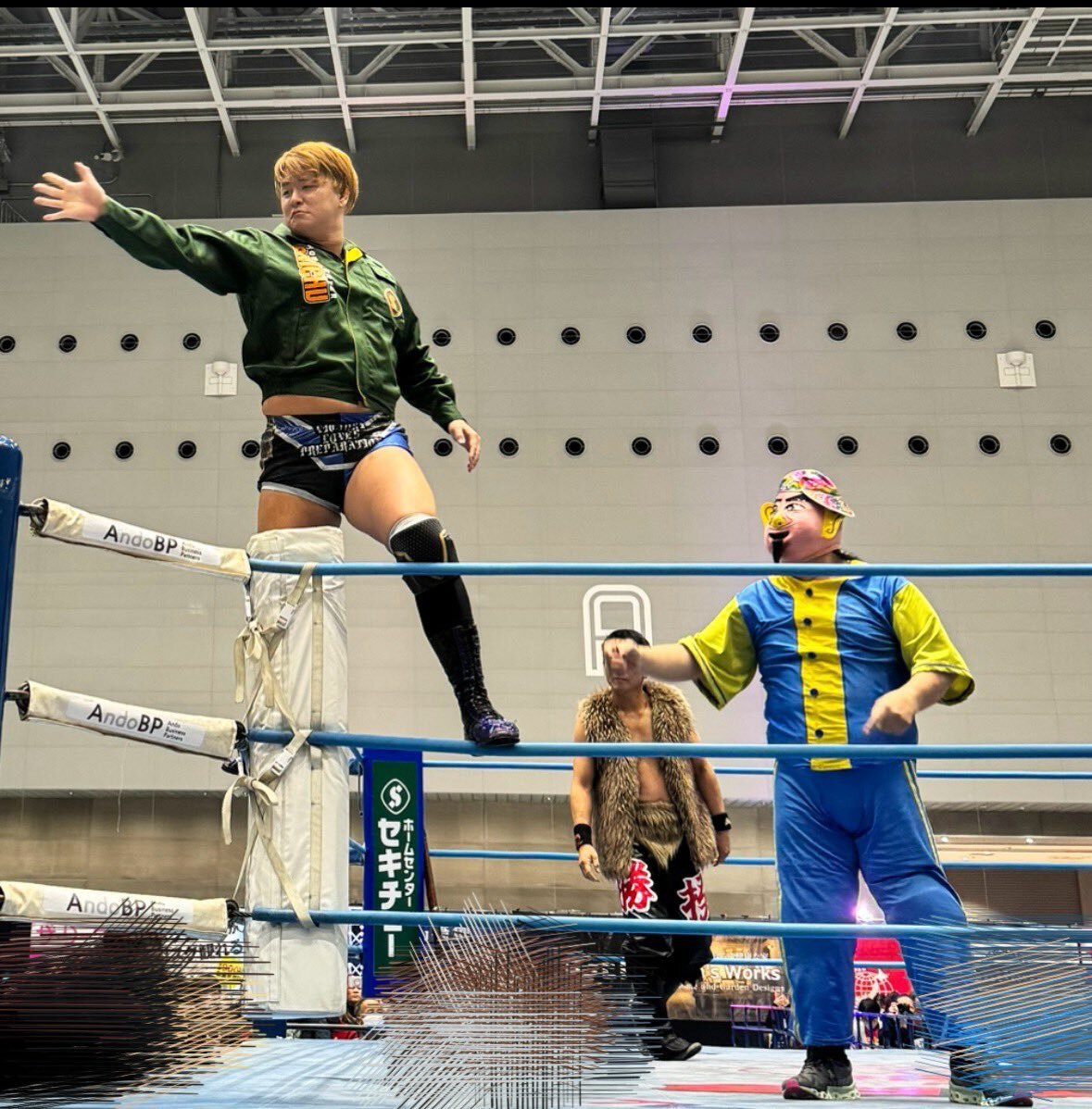 2025.11.16全日本プロレス群馬高崎大会 青柳優馬 選手セキチュー のジャケット似合ってました。コーナーにたってるの歌舞伎の見得みたい #ajpw #青柳優馬 選手 pic.x.com/2e6yWb2TEd