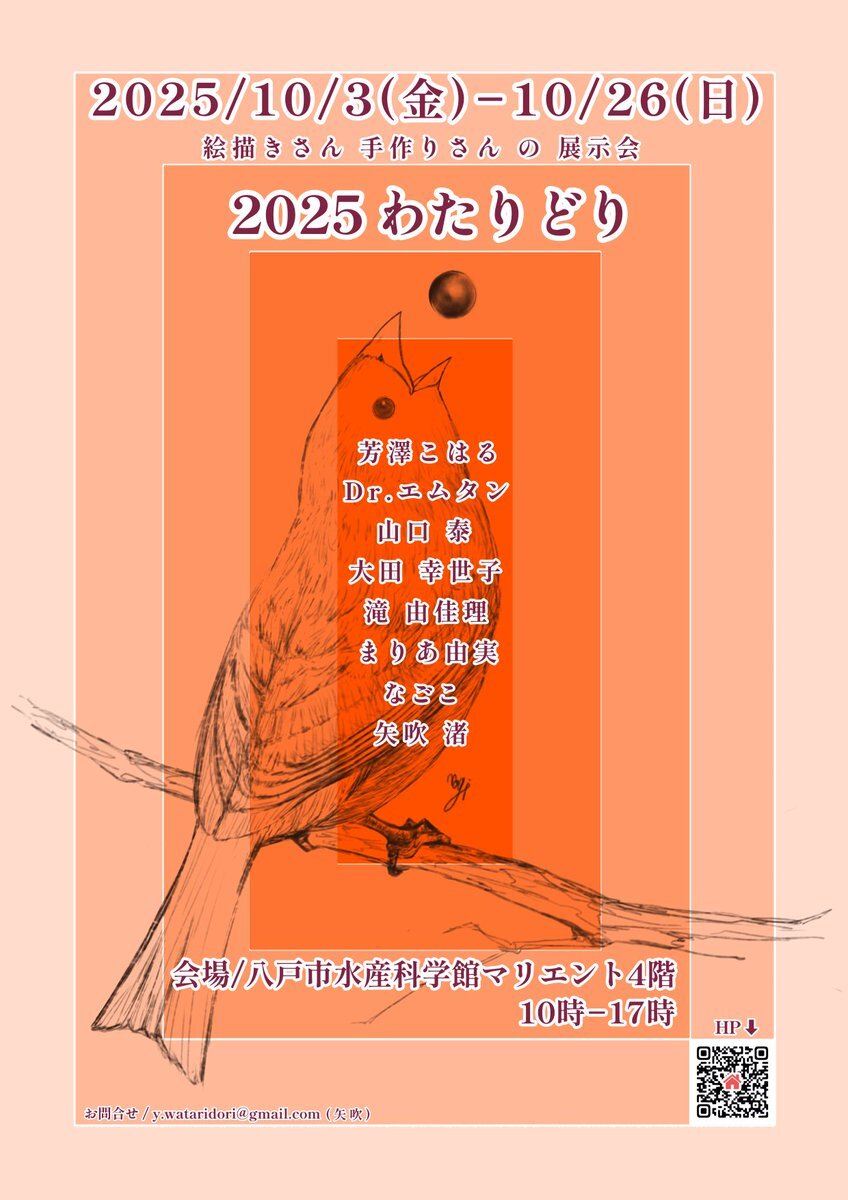いよいよ、明日10/3(金)スタートです🎪🕊️ 在廊日は10/9(木)、10/14(火)、10/20(月)、10/26(日)です📝 どなた様もどうぞよろしくお願いいたします🙇♀️ #青森県 #八戸市 #八戸市水産科学館マリエント #2025わたりどり #絵描きさん #手作りさん #グループ展示 x.com/emma_ny02/stat…