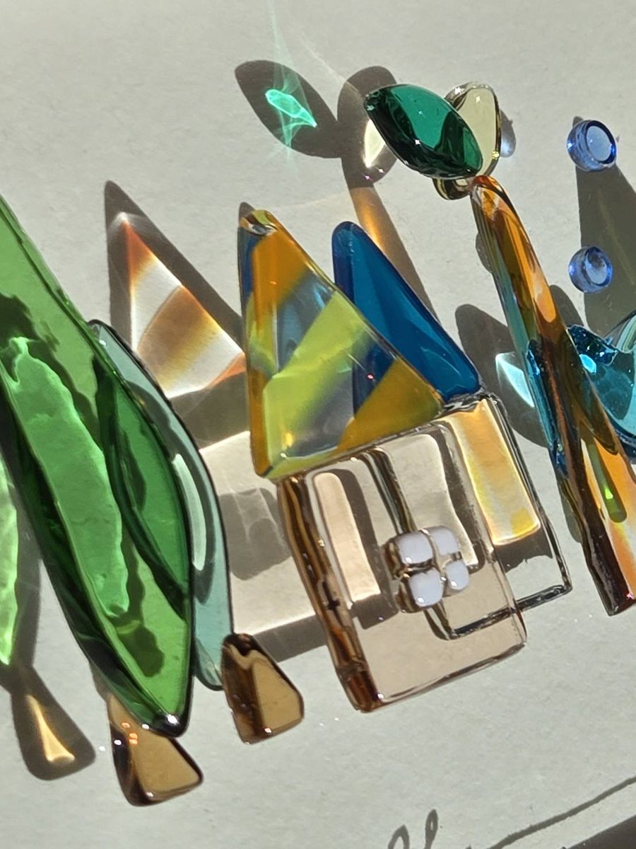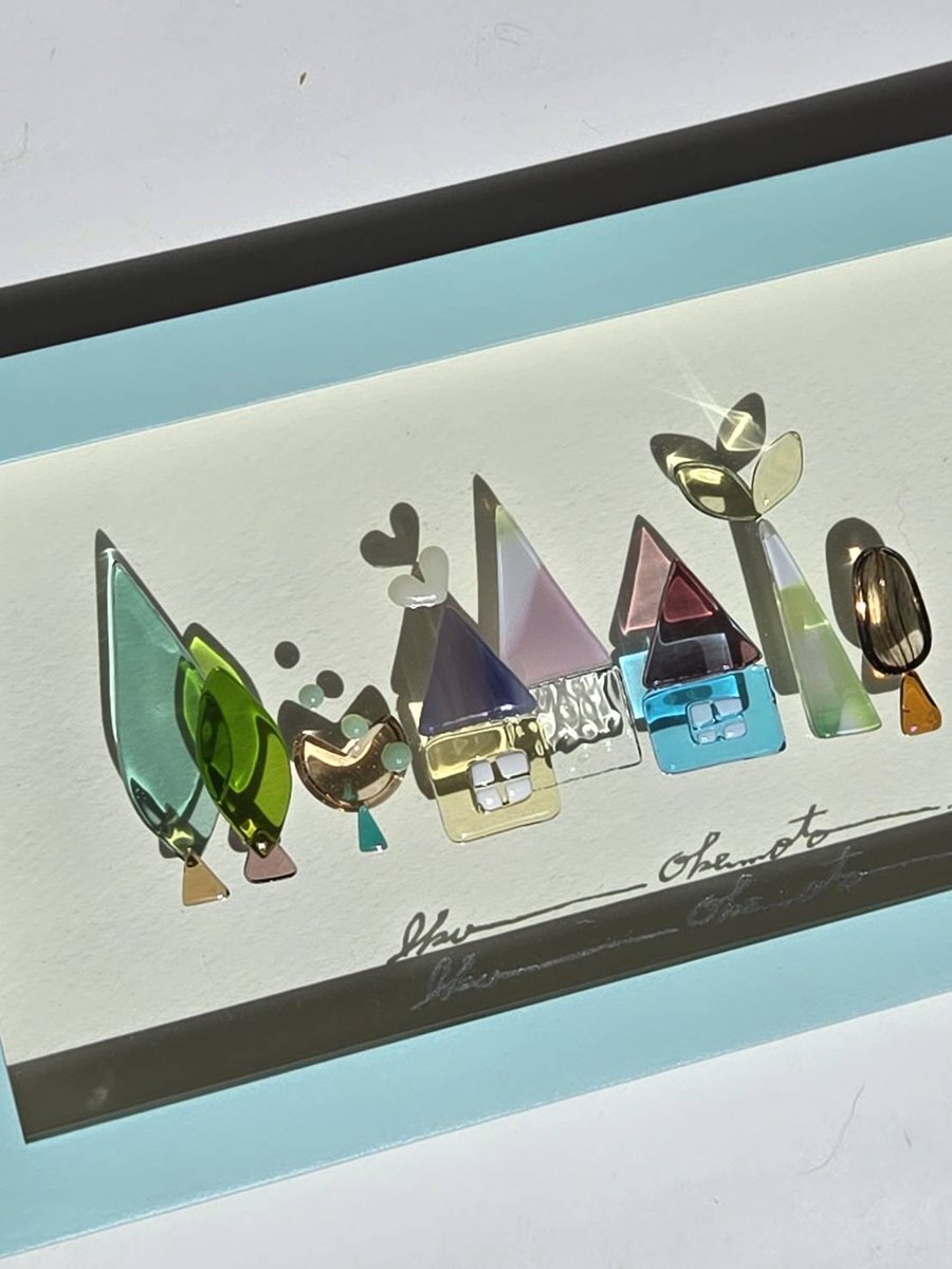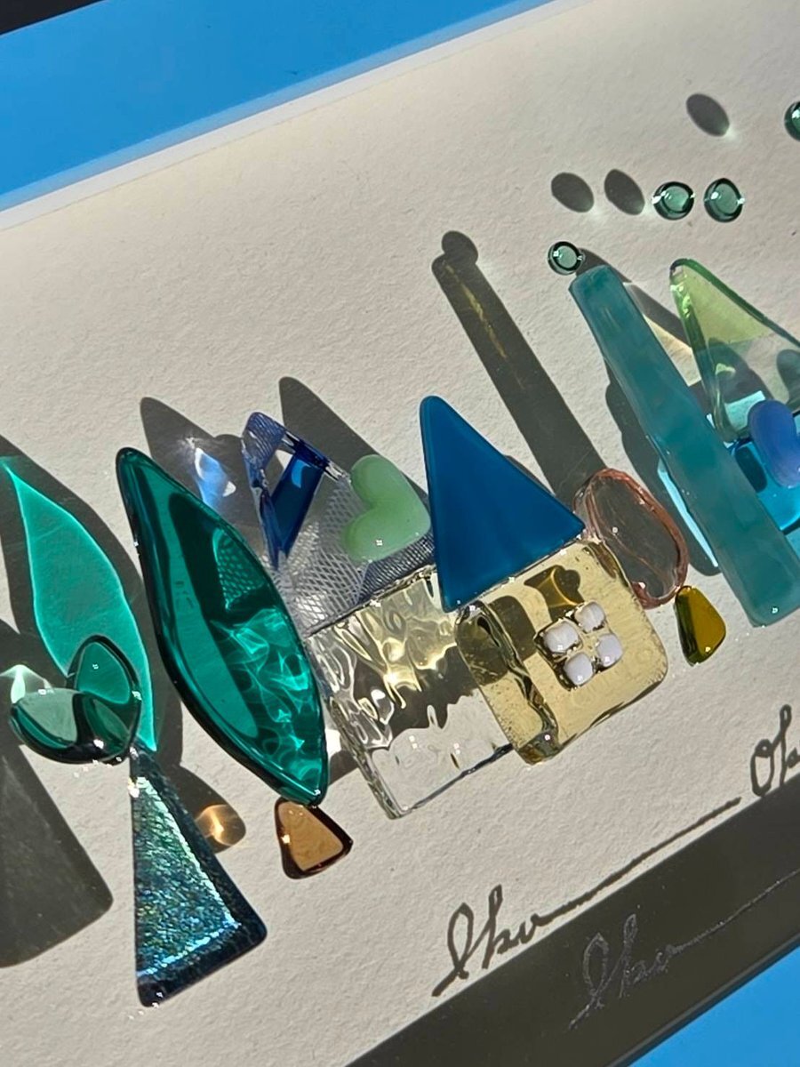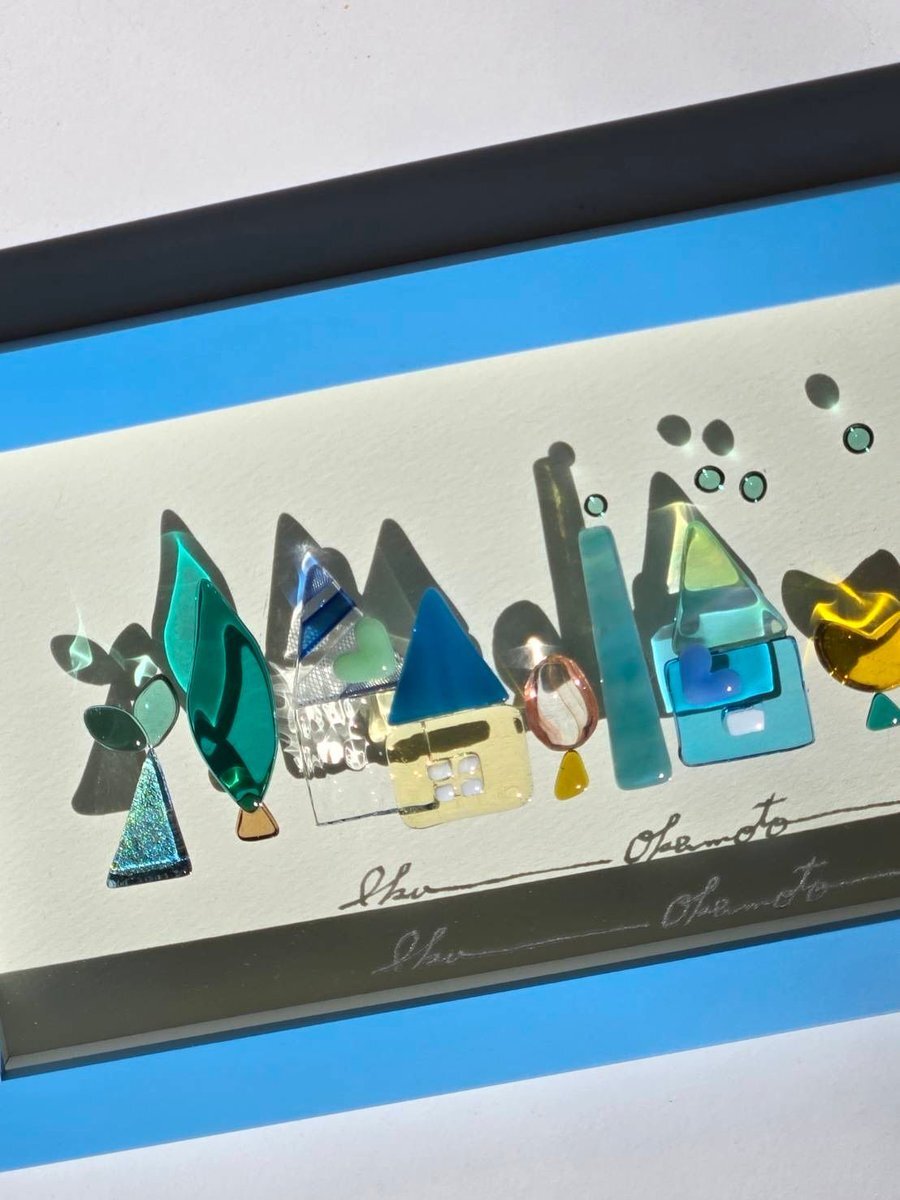 柔らかなブルーとグリーンのガラスが光に透けて爽やかな風を感じさせます✨ #青森県八戸市 #八戸彩画堂 #個展 #フュージング #ガラスアート #glasscollage #glassart #上村由希ガラス工房 #インテリア雑貨 #ハンドメイド #世界にひとつ #街並み pic.x.com/AqccOIm5Oa