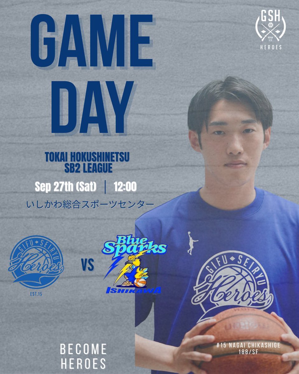 🔥Game Day🔥 東海・北信越SB2リーグ 🗓️9/27(土) 📍いしかわ総合スポーツセンター(石川県金沢市) 🕓12:00 🆚石川ブルースパークス #GifuSeiryuHeroes #岐阜セイリュウヒーローズ #青龍 #岐阜 #多治見 #バスケ #地域のヒーローに pic.x.com/pfTssDHdDH