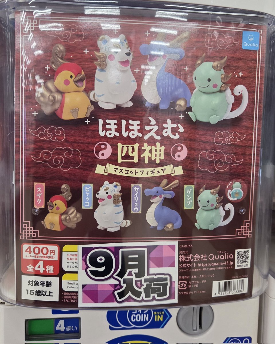 🐲ほほえむ四神 マスコットフィギュア🐯 イラストレーター #いぬひろ(@inuhiro85)さんの手によって東西南北、天の四方の方角を司る #四神 が可愛い #カプセルトイ になって登場です🦚 #青龍 も #白虎 も #朱雀 も #玄武 もニッコニコ♪ 笑う門には福来たる〜🐢✨ 全4種1回400円 pic.x.com/akuwLR0MyN