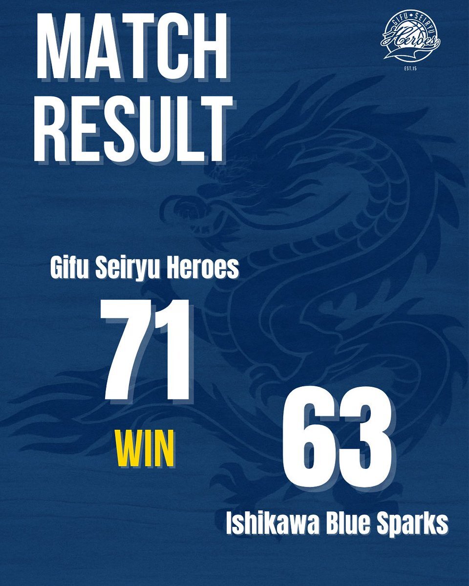 【試合結果】 東海・北信越SB2リーグ 🆚石川ブルースパークス 71-63 Win 序盤リードされるものの、控え選手の活躍もあり勝利🔥 明日の試合も頑張ります💪 Next Game⏩⏩ 9/28(日) 10:00 vs 豊田合成スコーピオンズ #GifuSeiryuHeroes #岐阜セイリュウヒーローズ #青龍 #岐阜 #多治見 pic.x.com/uEvKzHBcUA