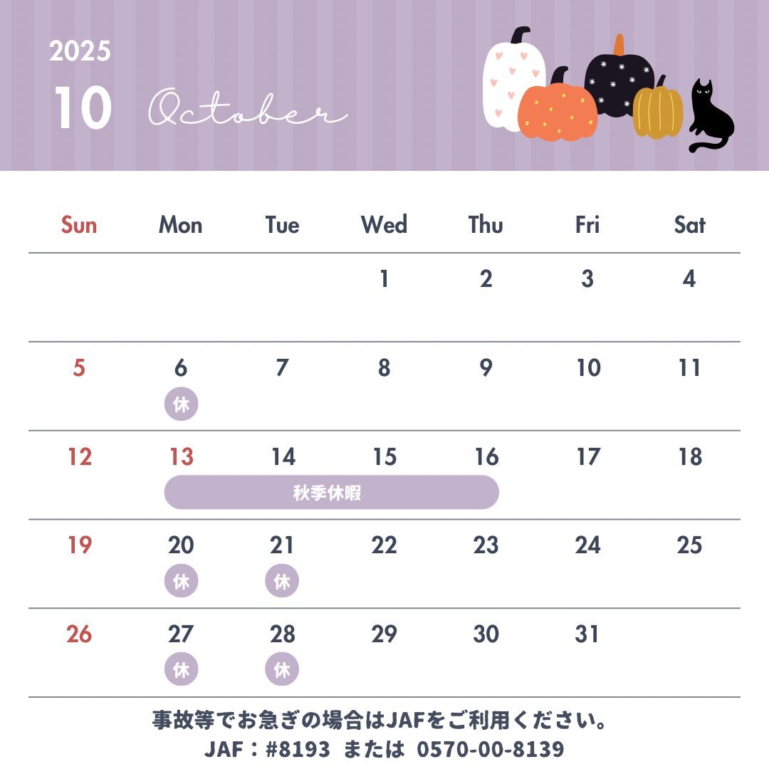 🎃10月休店日のお知らせ🍁 6日、13日〜16日、20日、21日、27日、28日 事故等でお急ぎの場合はJAFをご利用ください。 TEL:#8139 または 0570-00-8139 ご不便をおかけしますが、ご理解の程よろしくお願いします。 #静岡三菱 pic.x.com/L2hGtfOMtF