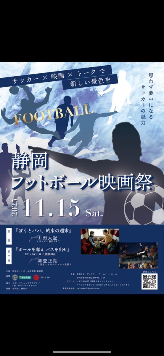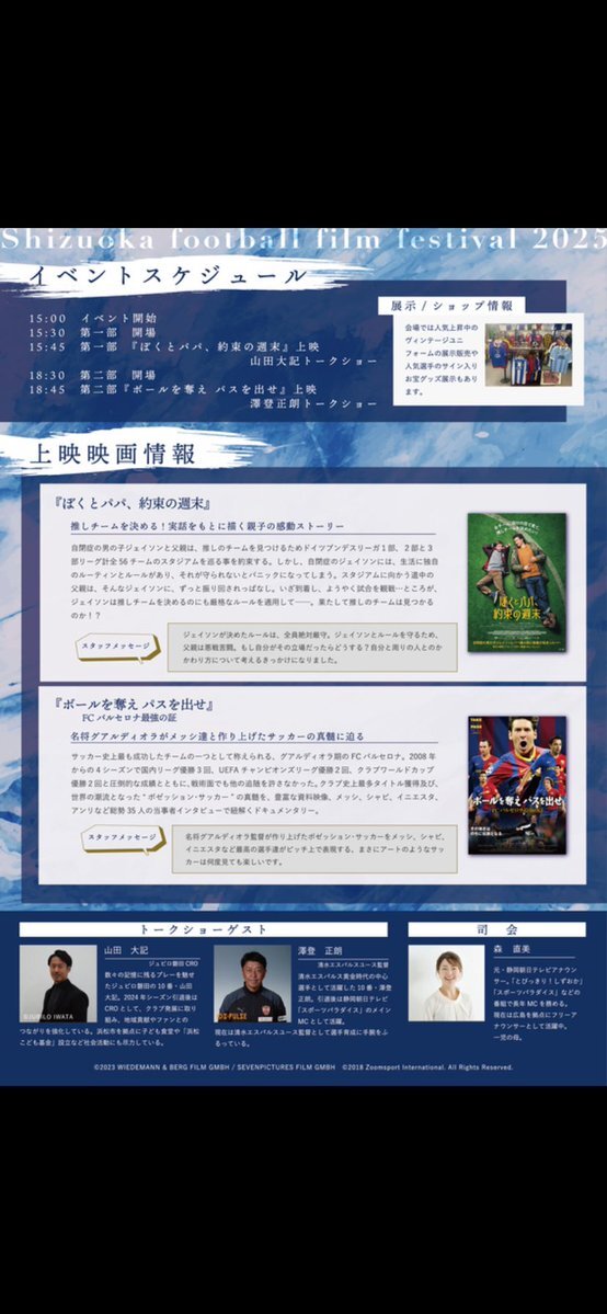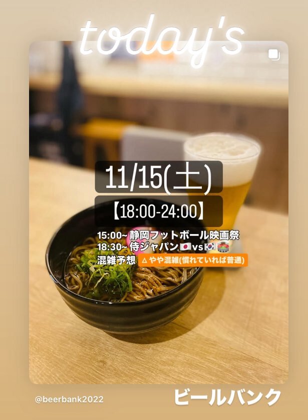 こんにちは、 15:00~フットボール映画祭 18:30~ 侍ジャパン🇯🇵vs🇰🇷 【混雑予想】 △ やや混雑(慣れていれば普通) #静岡市 #spulse #ベルテックス静岡 #静岡フットボール映画祭 #静岡シネギャラリー pic.x.com/W7xVrDen51